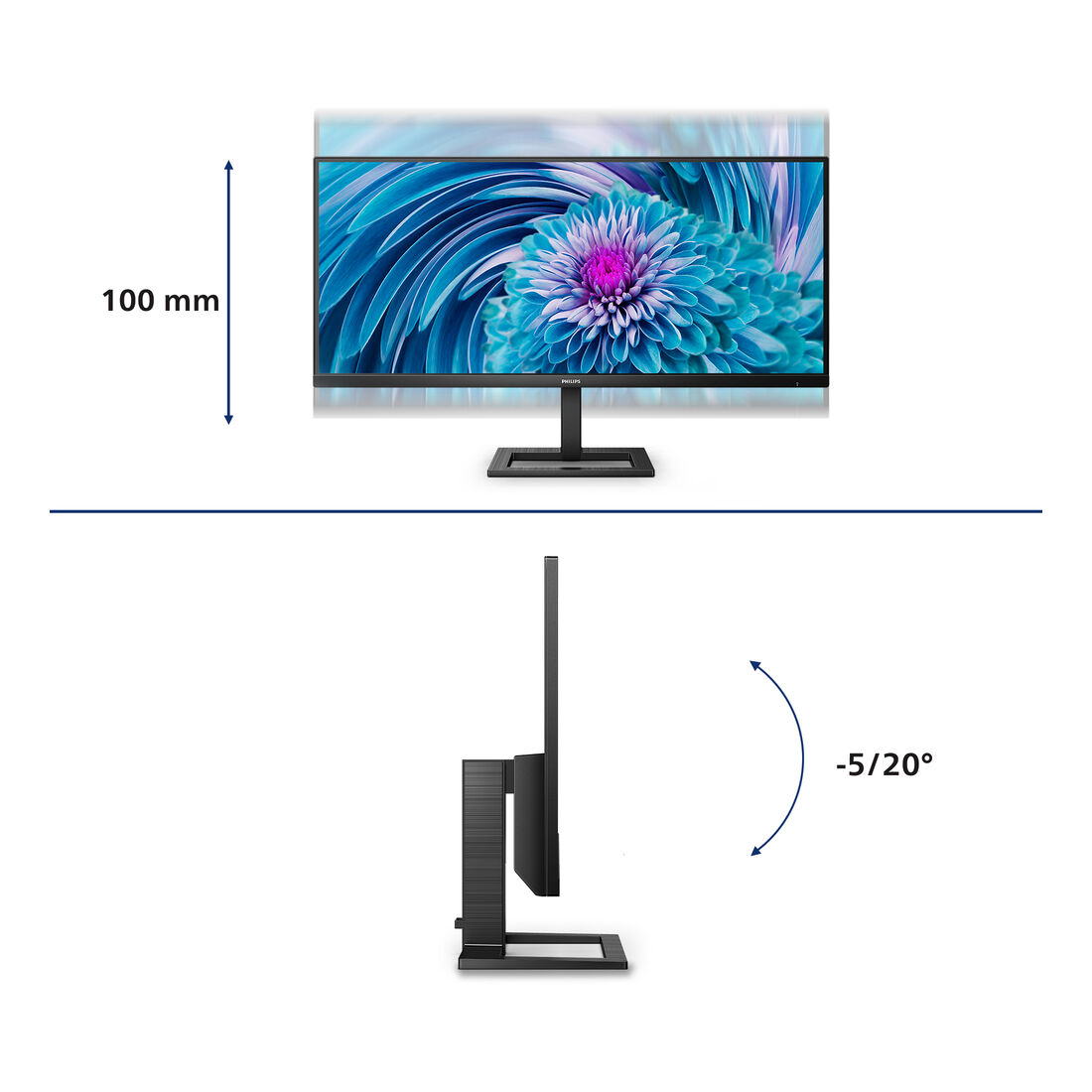 Philips E Line 346E2LAE/00. Dimensioni diagonale schermo: 86,4 cm (34″), Risoluzione del display: 3440 x 1440 Pixel, Tipologia HD: Wide Quad HD, Tecnologia display: LCD, Tempo di risposta: 4 ms, Rapporto d’aspetto nativo: 21:9, Angolo di visualizzazione (orizzontale): 178°, Angolo di visualizzazione (verticale): 178°. Altoparlanti incorporati. Hub USB integrato, Versione dell’hub USB: 3.2 Gen 1 (3.1 Gen 1). Montaggio standard VESA, Regolazione altezza. Colore del prodotto: Nero