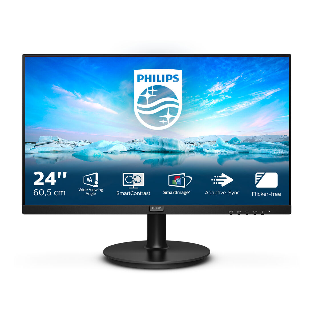 Philips V Line 242V8LA/00. Dimensioni diagonale schermo: 60,5 cm (23.8″), Risoluzione del display: 1920 x 1080 Pixel, Tipologia HD: Full HD, Tecnologia display: LED, Superficie display: Opaco, Tempo di risposta: 4 ms, Rapporto d’aspetto nativo: 16:9, Angolo di visualizzazione (orizzontale): 178°, Angolo di visualizzazione (verticale): 178°. Altoparlanti incorporati. Montaggio standard VESA. Colore del prodotto: Nero