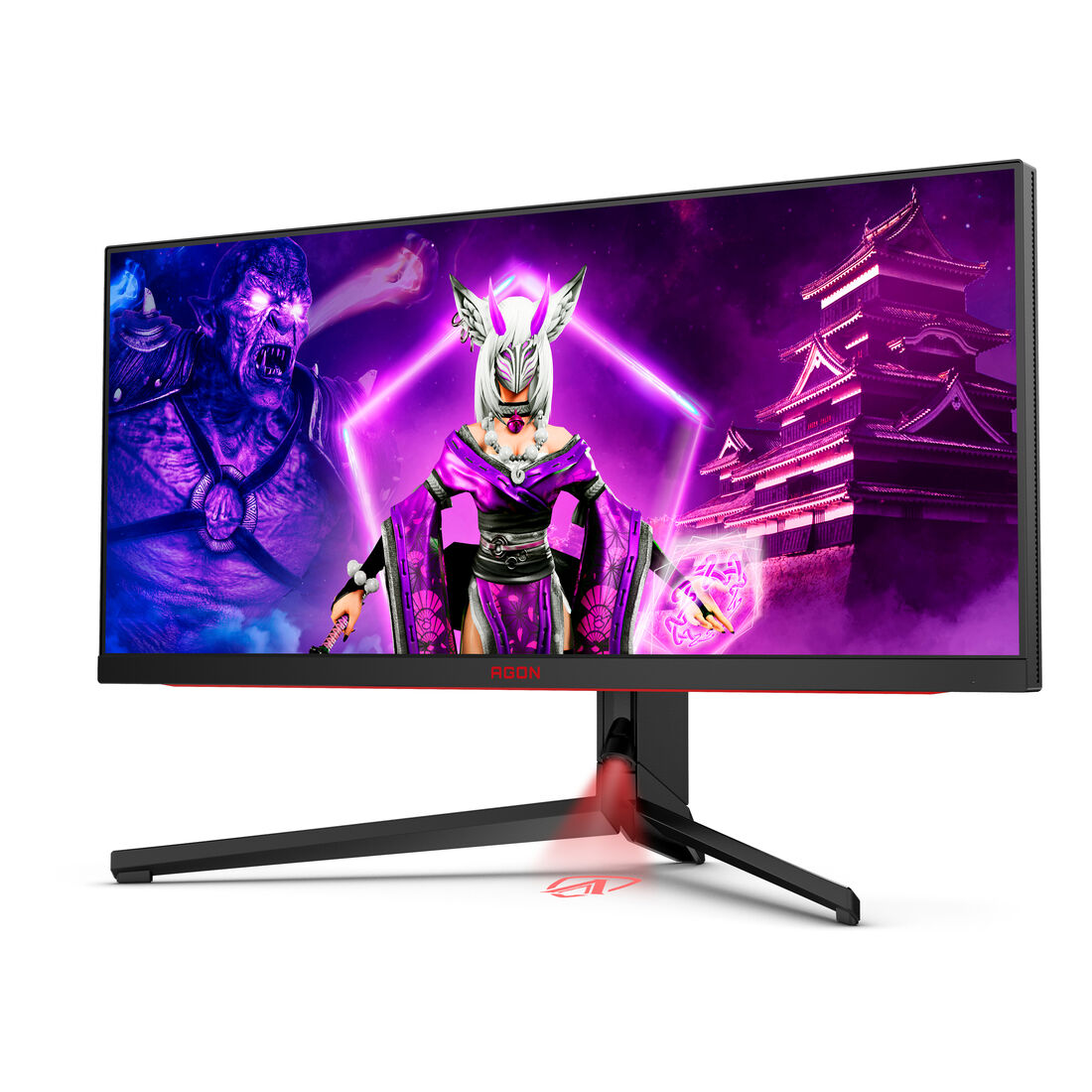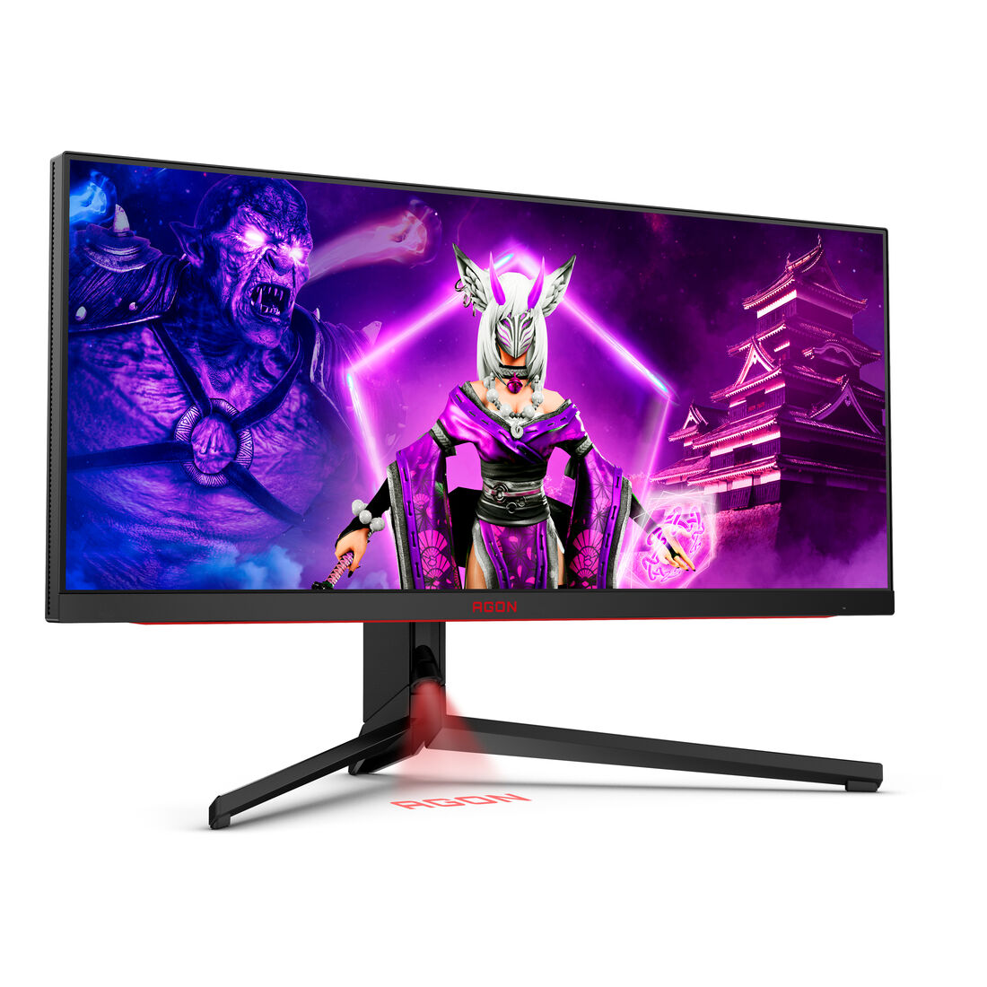 AOC AGON PRO AG344UXM. Dimensioni diagonale schermo: 86,4 cm (34″), Risoluzione del display: 3440 x 1440 Pixel, Tipologia HD: UltraWide Quad HD, Tecnologia display: LED, Tempo di risposta: 1 ms, Rapporto d’aspetto nativo: 21:9, Angolo di visualizzazione (orizzontale): 178°, Angolo di visualizzazione (verticale): 178°. Altoparlanti incorporati. Hub USB integrato, Versione dell’hub USB: 3.2 Gen 1 (3.1 Gen 1). Montaggio standard VESA, Regolazione altezza. Colore del prodotto: Nero, Rosso