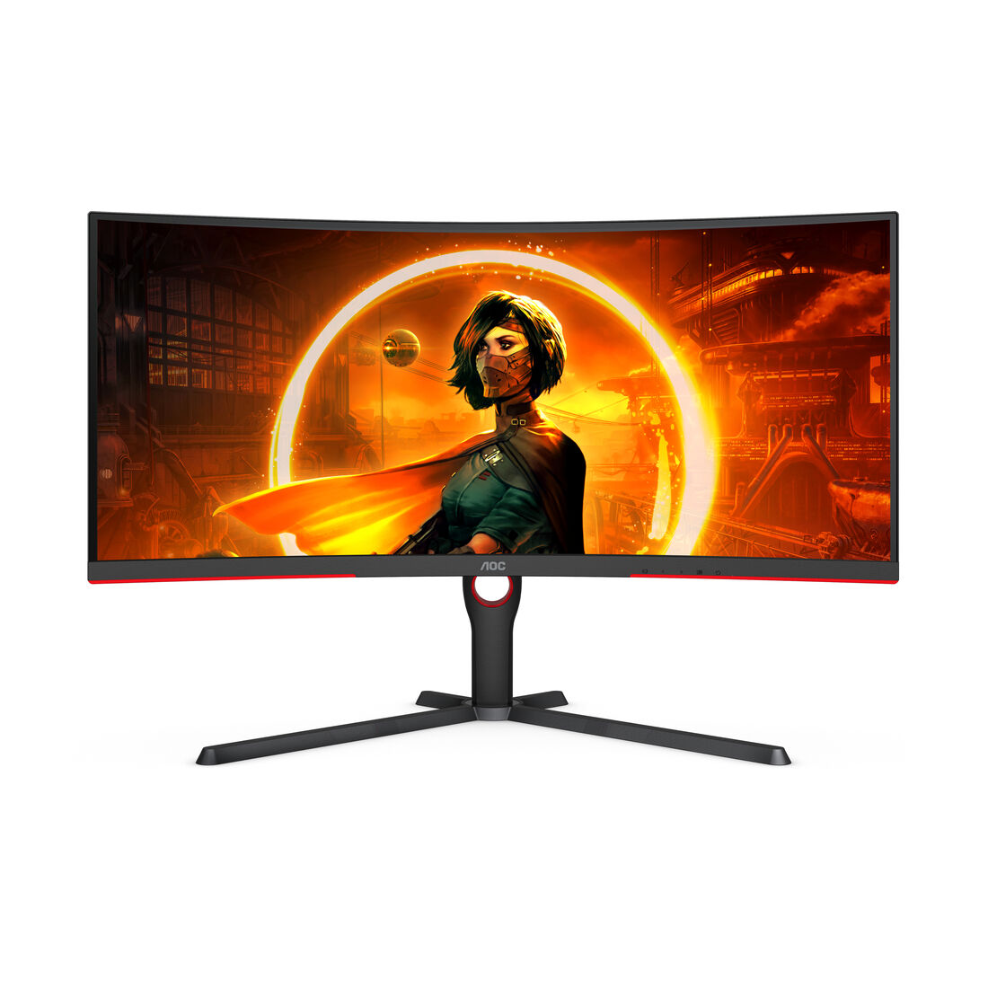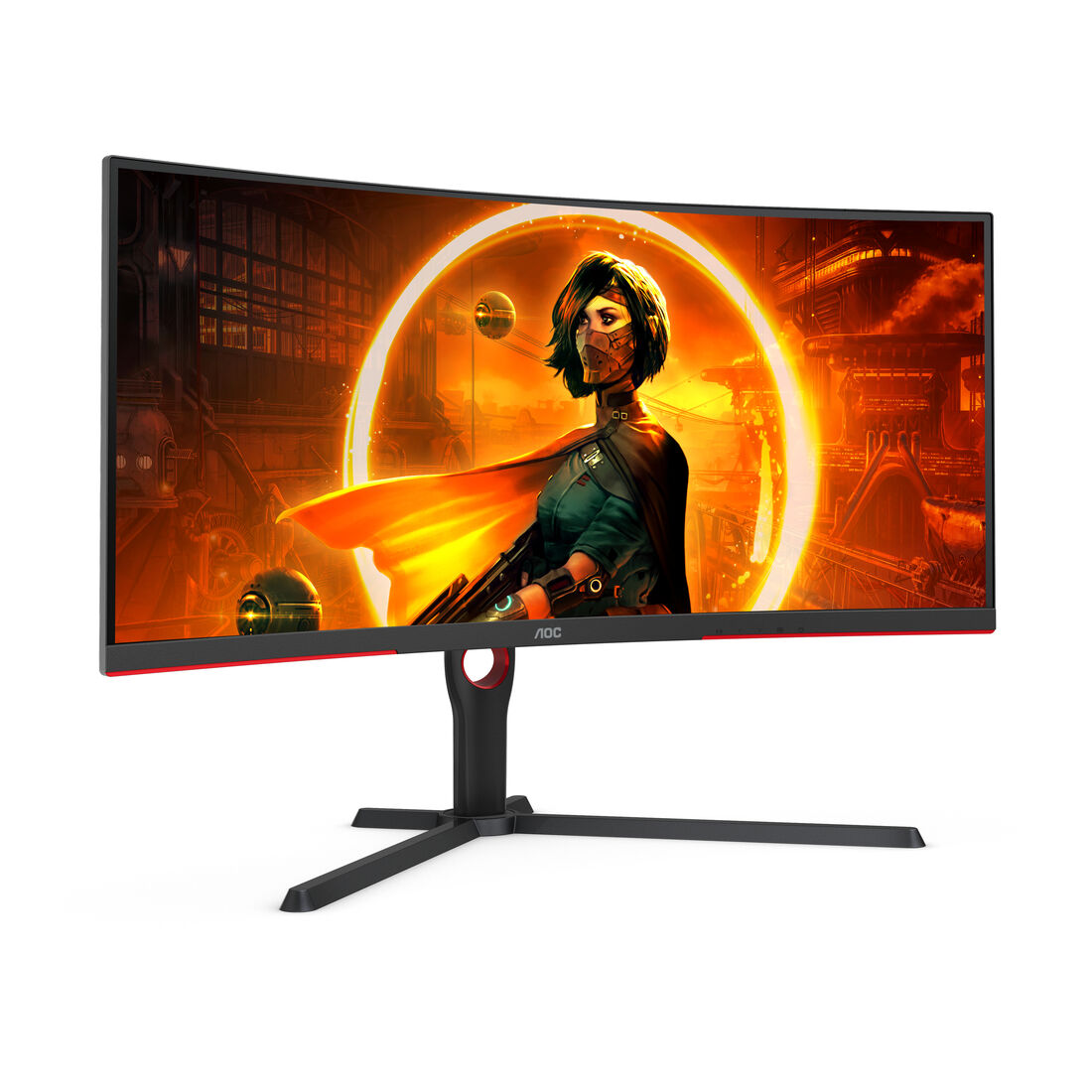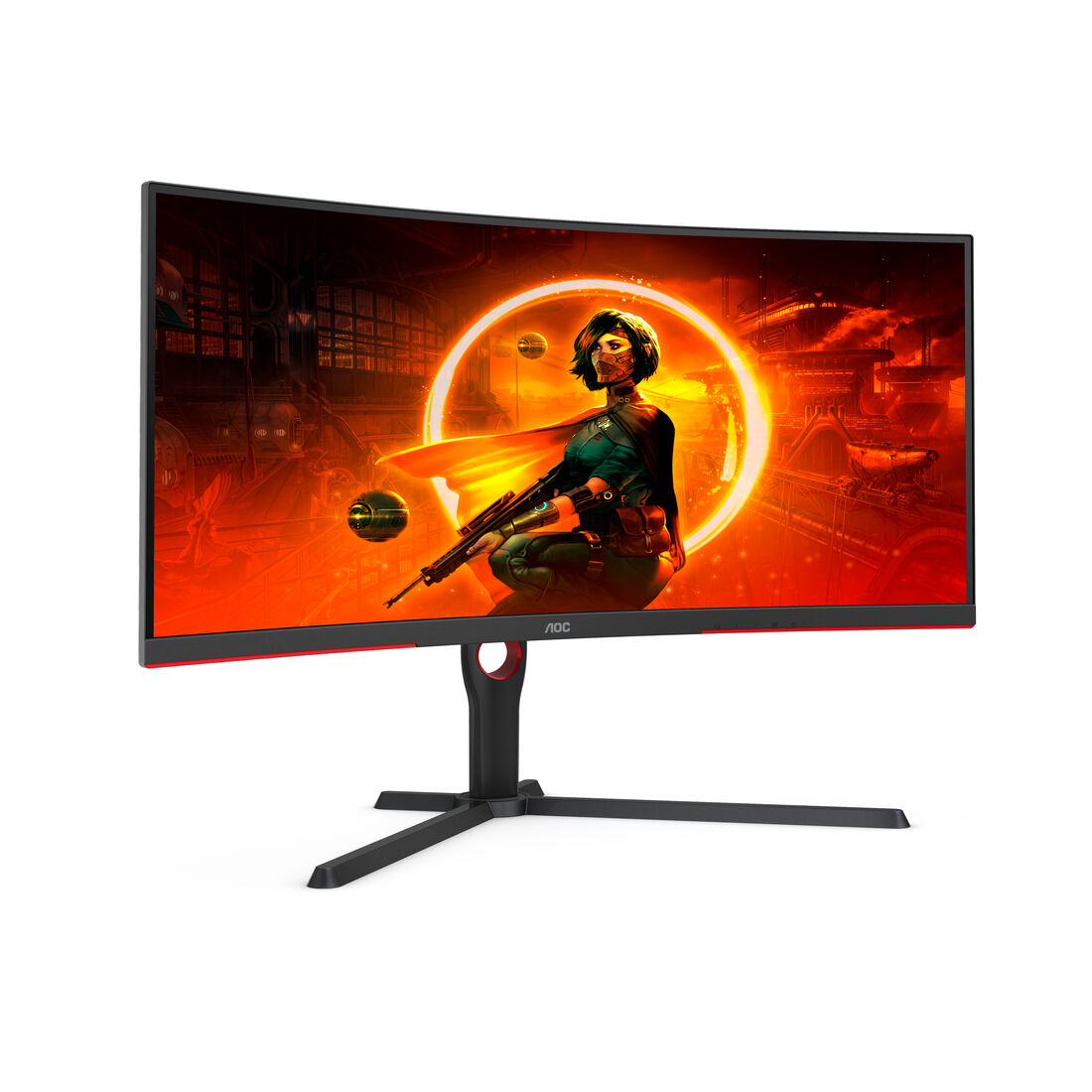 AOC G3 CU34G3S/BK. Dimensioni diagonale schermo: 86,4 cm (34″), Risoluzione del display: 3440 x 1440 Pixel, Tipologia HD: Wide Quad HD, Tecnologia display: LED, Tempo di risposta: 1 ms, Rapporto d’aspetto nativo: 21:9, Angolo di visualizzazione (orizzontale): 178°, Angolo di visualizzazione (verticale): 178°. Altoparlanti incorporati. Hub USB integrato, Versione dell’hub USB: 3.2 Gen 1 (3.1 Gen 1). Montaggio standard VESA, Regolazione altezza. Colore del prodotto: Nero, Rosso