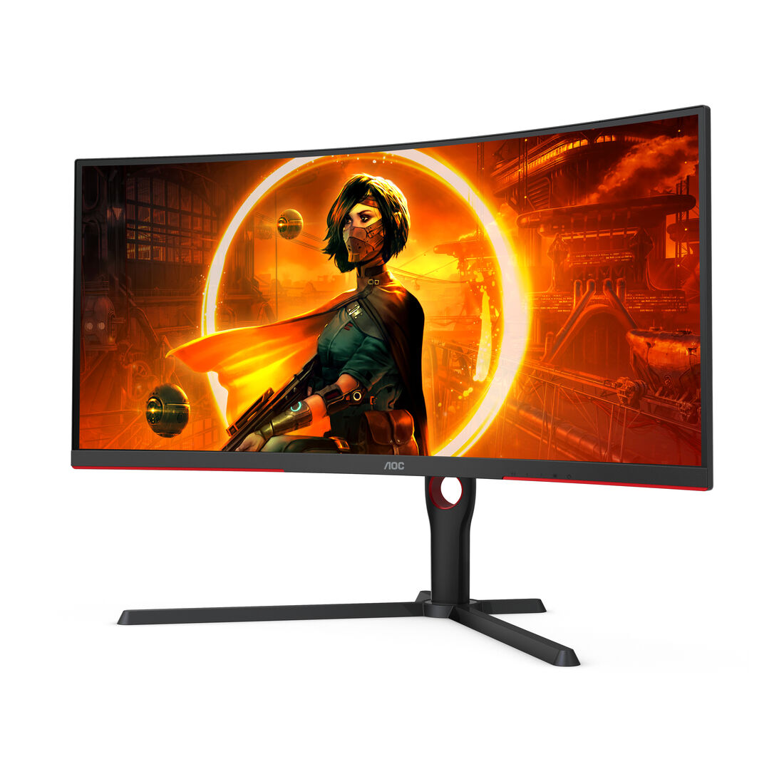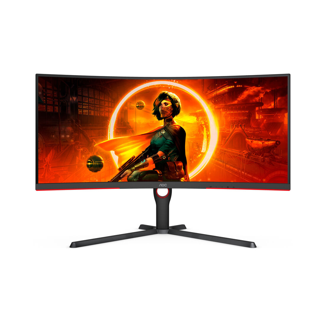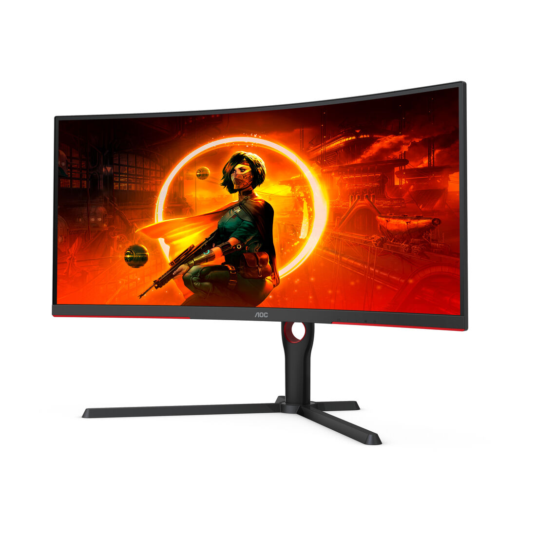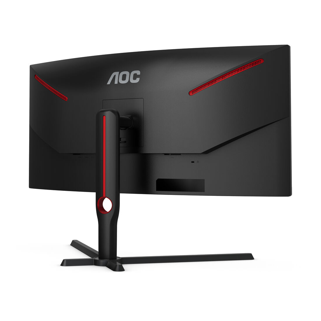 AOC G3 CU34G3S/BK. Dimensioni diagonale schermo: 86,4 cm (34″), Risoluzione del display: 3440 x 1440 Pixel, Tipologia HD: Wide Quad HD, Tecnologia display: LED, Tempo di risposta: 1 ms, Rapporto d’aspetto nativo: 21:9, Angolo di visualizzazione (orizzontale): 178°, Angolo di visualizzazione (verticale): 178°. Altoparlanti incorporati. Hub USB integrato, Versione dell’hub USB: 3.2 Gen 1 (3.1 Gen 1). Montaggio standard VESA, Regolazione altezza. Colore del prodotto: Nero, Rosso