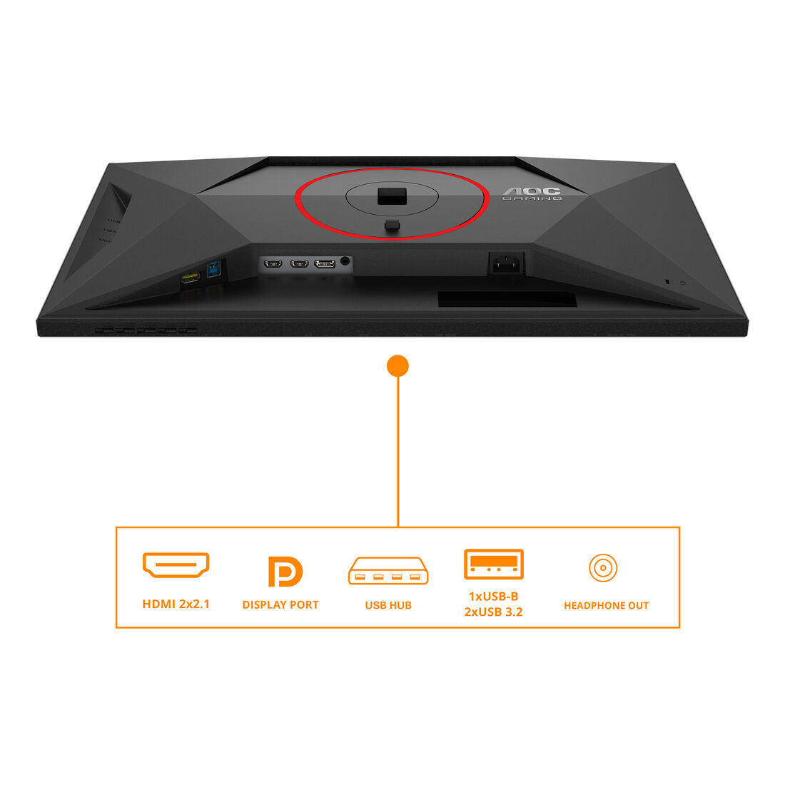AOC G4 Q27G4SRU. Dimensioni diagonale schermo: 68,6 cm (27″), Risoluzione del display: 2560 x 1440 Pixel, Tipologia HD: Quad HD, Tecnologia display: LED, Tempo di risposta: 1 ms, Rapporto d’aspetto nativo: 16:9, Angolo di visualizzazione (orizzontale): 178°, Angolo di visualizzazione (verticale): 178°. Montaggio standard VESA, Regolazione altezza. Colore del prodotto: Nero