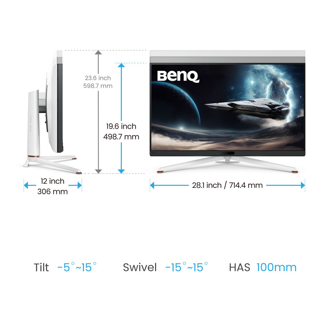 BenQ EX321UX. Dimensioni diagonale schermo: 80 cm (31.5″), Risoluzione del display: 3840 x 2160 Pixel, Tipologia HD: 4K Ultra HD, Tecnologia display: LED, Tempo di risposta: 1 ms, Rapporto d’aspetto nativo: 16:9, Angolo di visualizzazione (orizzontale): 178°, Angolo di visualizzazione (verticale): 178°. Hub USB integrato, Versione dell’hub USB: 3.2 Gen 1 (3.1 Gen 1). Montaggio standard VESA, Regolazione altezza. Colore del prodotto: Bianco