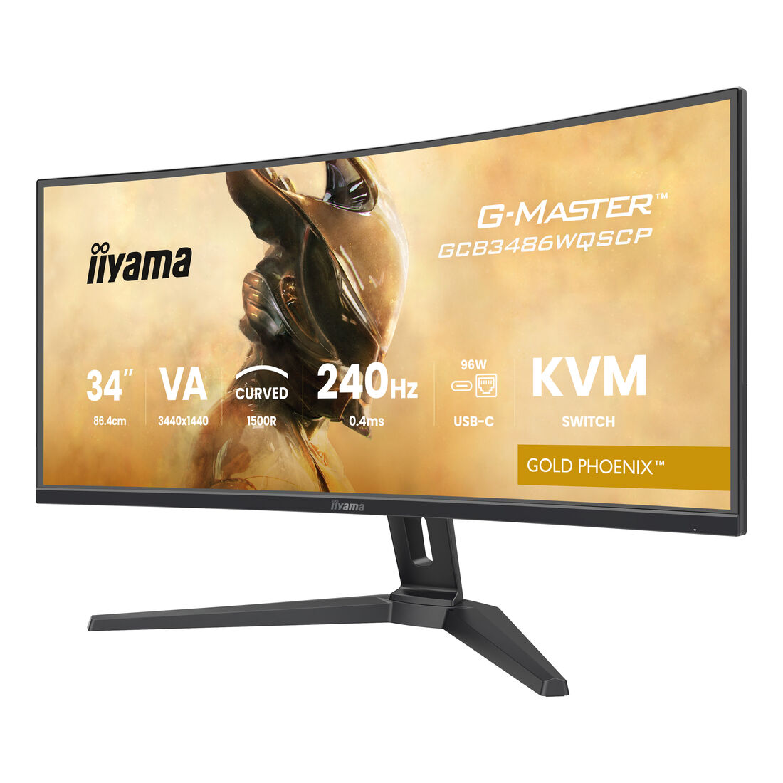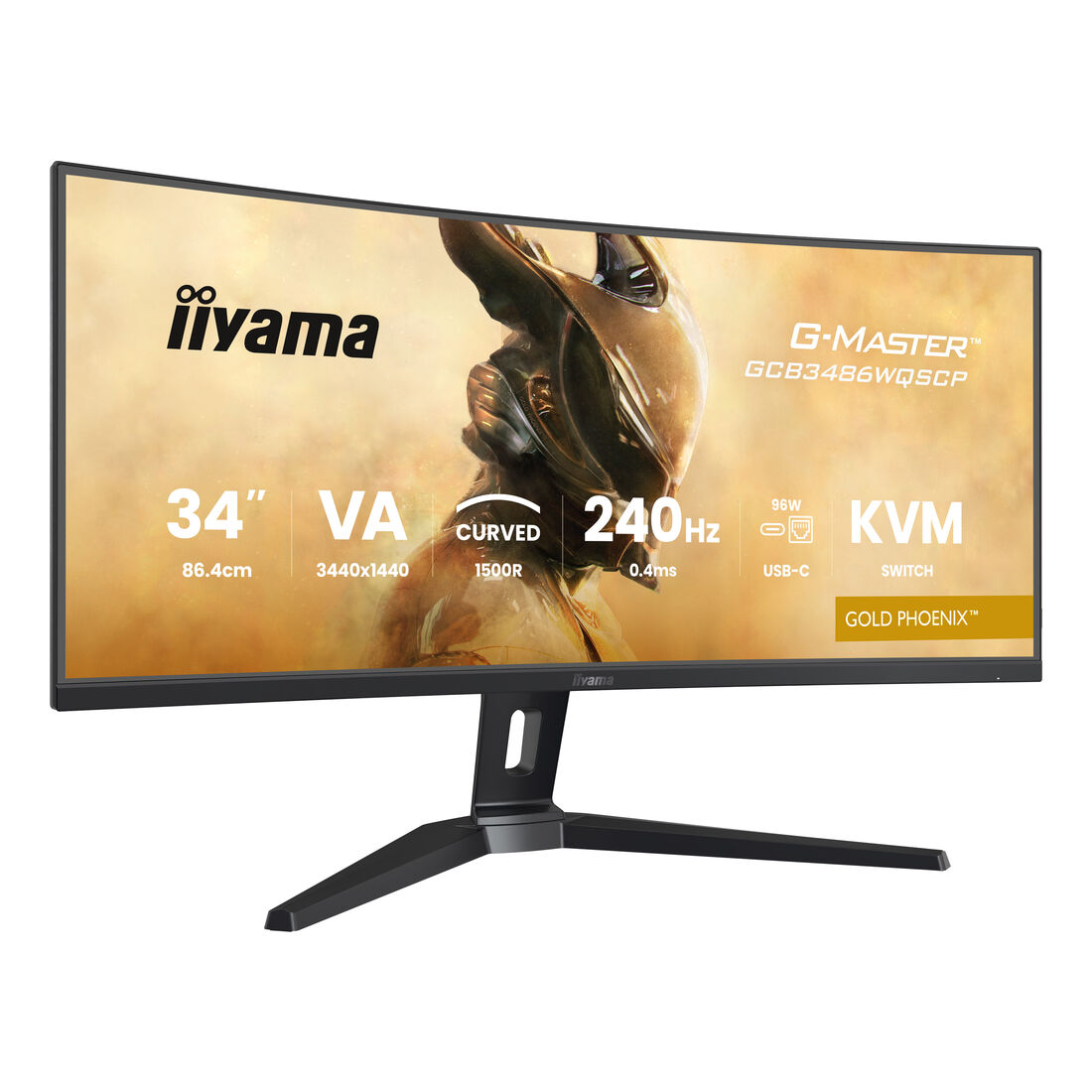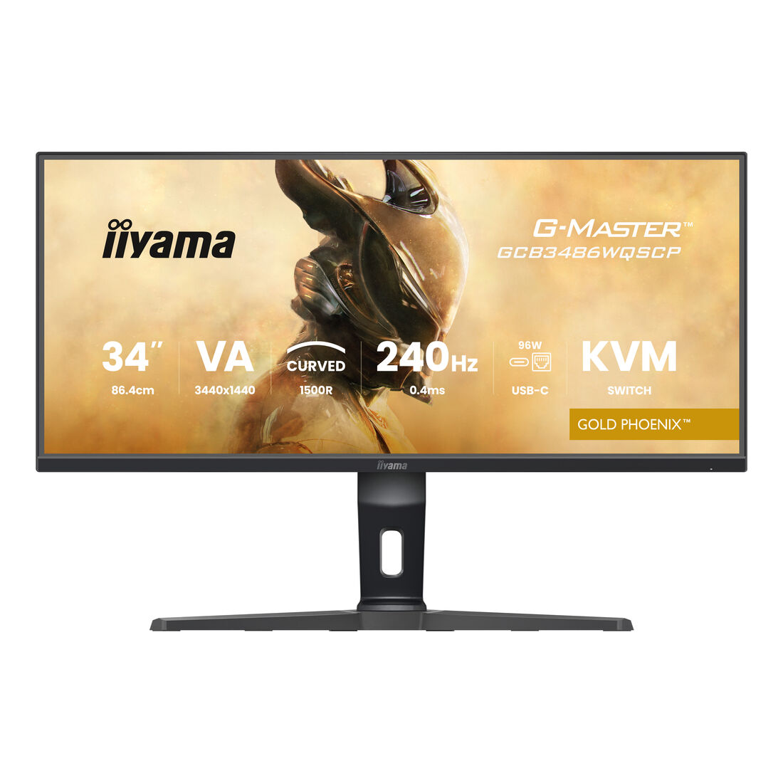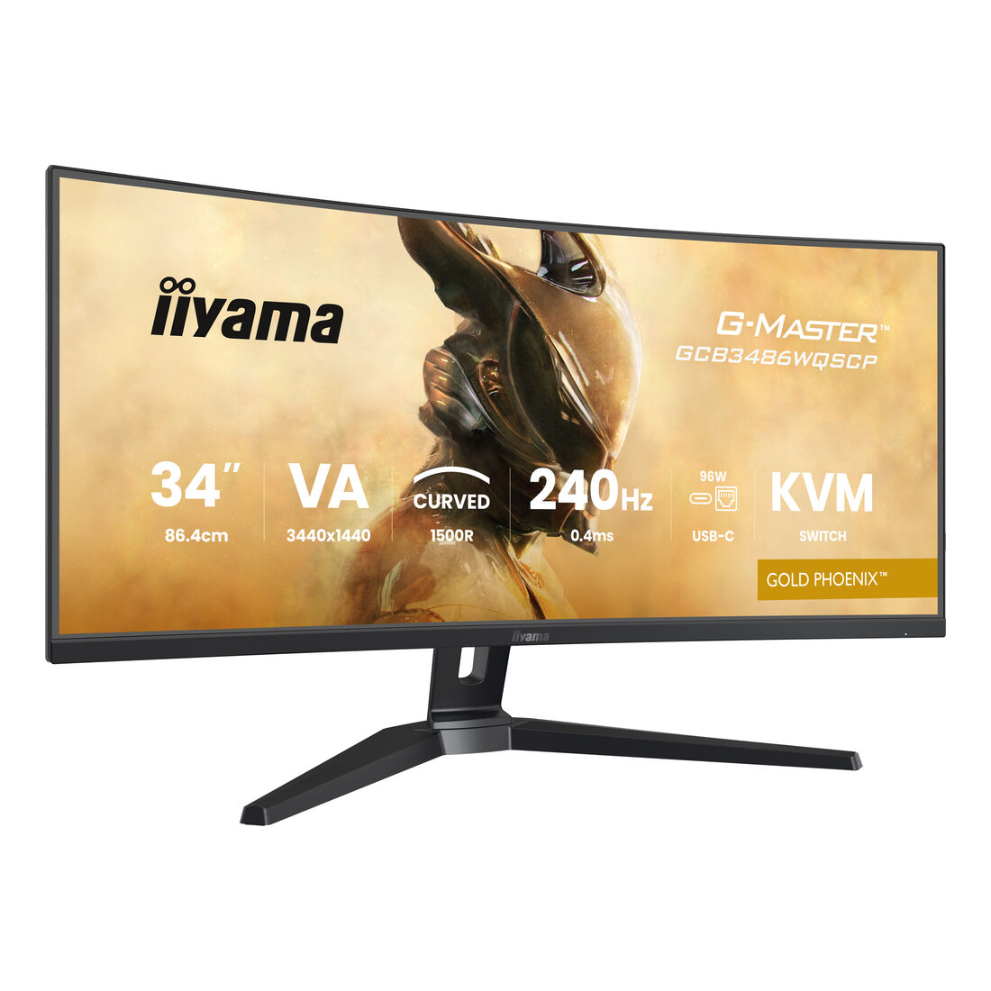 iiyama G-MASTER GCB3486WQSCP-B1. Dimensioni diagonale schermo: 86,4 cm (34″), Risoluzione del display: 3440 x 1440 Pixel, Tipologia HD: UltraWide Quad HD, Tempo di risposta: 0,4 ms, Rapporto d’aspetto nativo: 21:9, Angolo di visualizzazione (orizzontale): 178°, Angolo di visualizzazione (verticale): 178°. Altoparlanti incorporati. Hub USB integrato, Versione dell’hub USB: 3.2 Gen 1 (3.1 Gen 1). Montaggio standard VESA, Regolazione altezza. Colore del prodotto: Nero