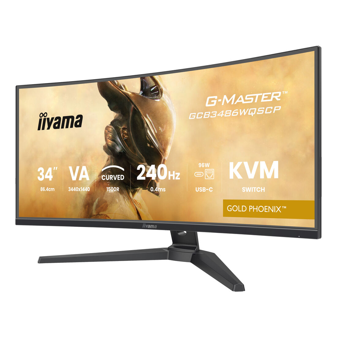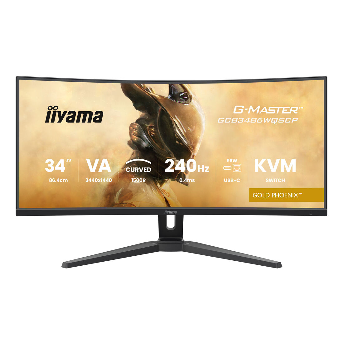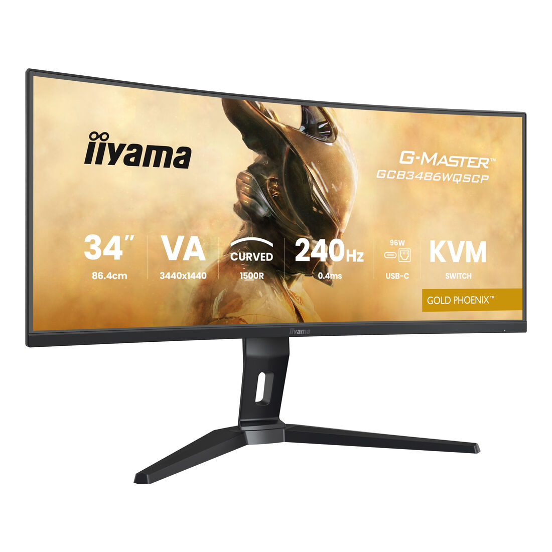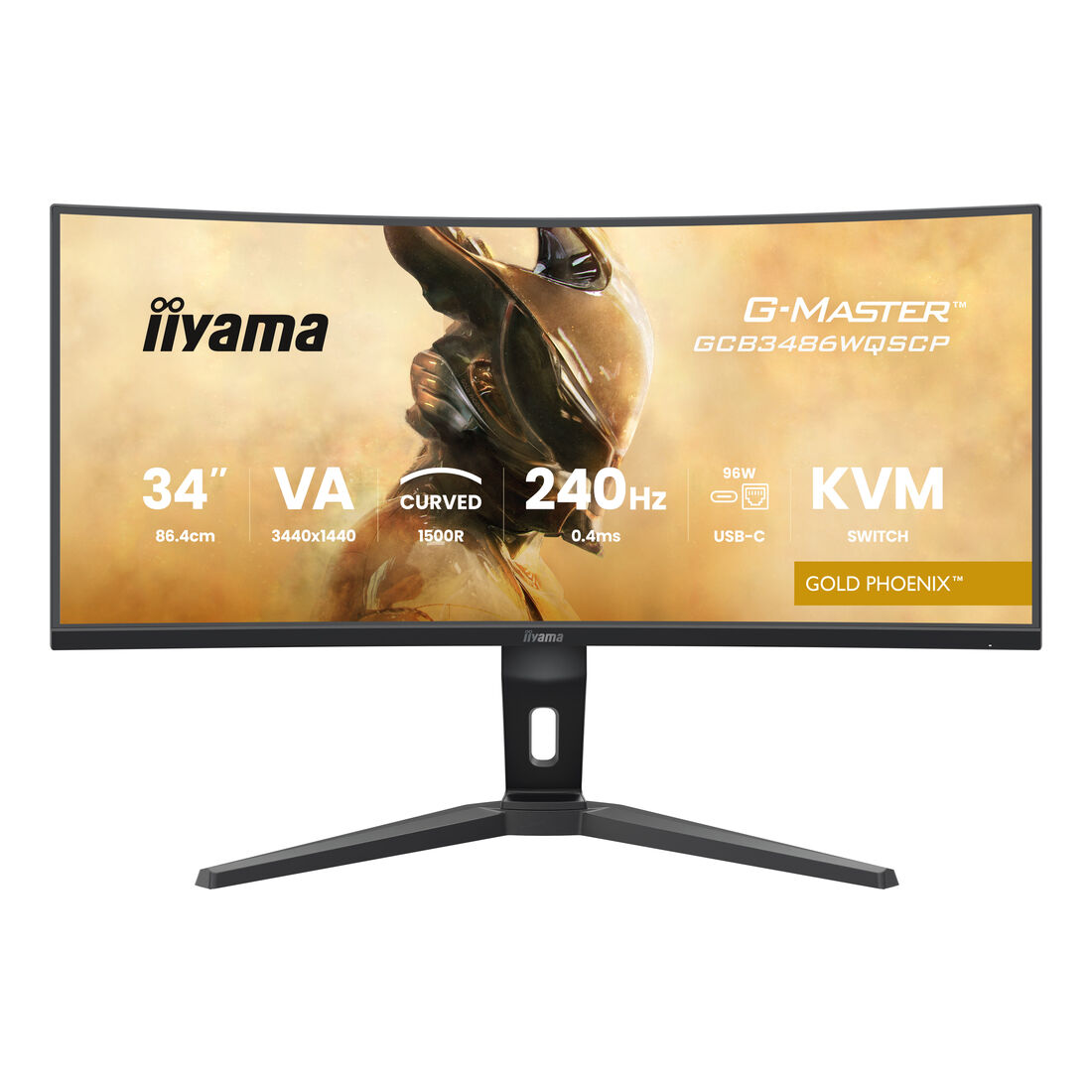 iiyama G-MASTER GCB3486WQSCP-B1. Dimensioni diagonale schermo: 86,4 cm (34″), Risoluzione del display: 3440 x 1440 Pixel, Tipologia HD: UltraWide Quad HD, Tempo di risposta: 0,4 ms, Rapporto d’aspetto nativo: 21:9, Angolo di visualizzazione (orizzontale): 178°, Angolo di visualizzazione (verticale): 178°. Altoparlanti incorporati. Hub USB integrato, Versione dell’hub USB: 3.2 Gen 1 (3.1 Gen 1). Montaggio standard VESA, Regolazione altezza. Colore del prodotto: Nero