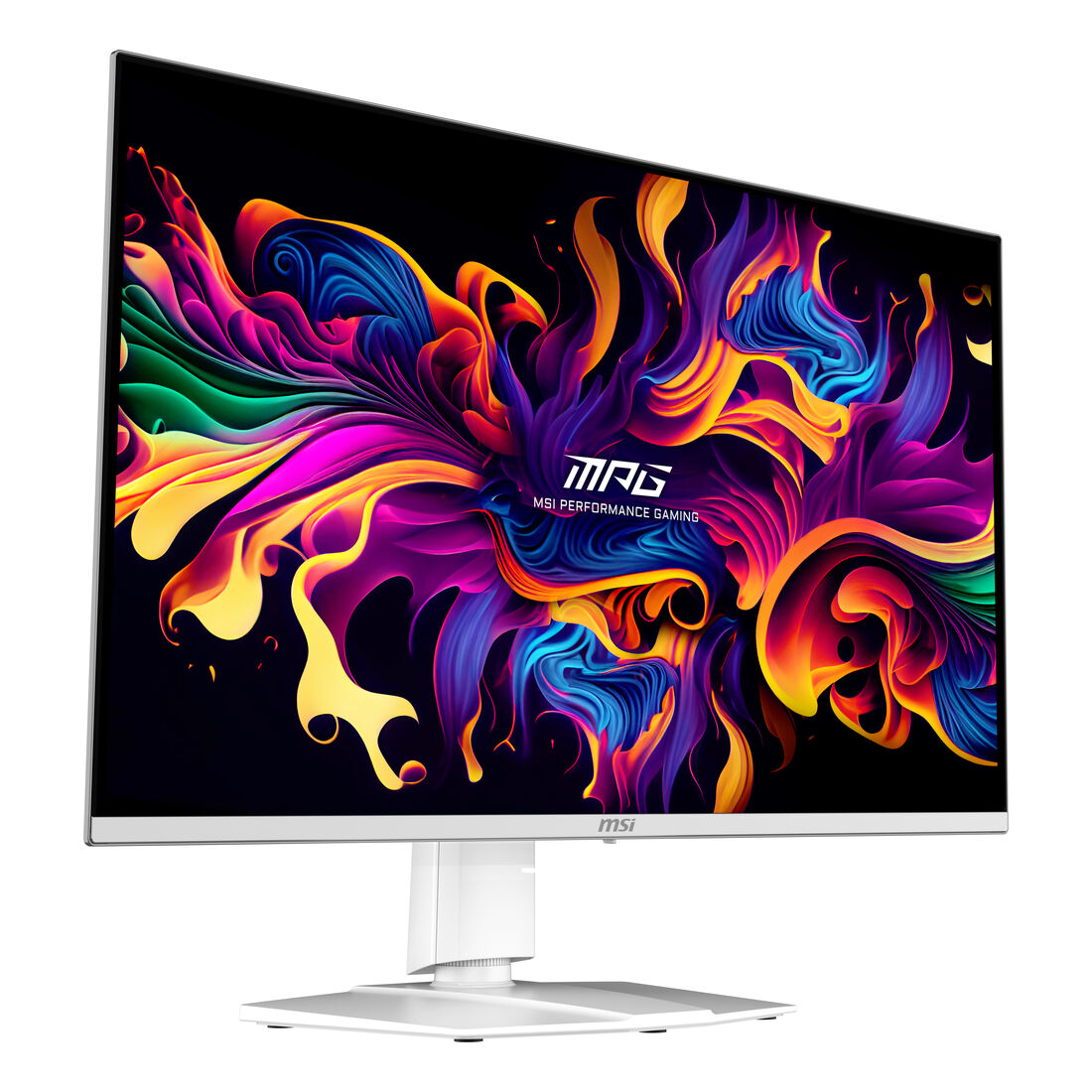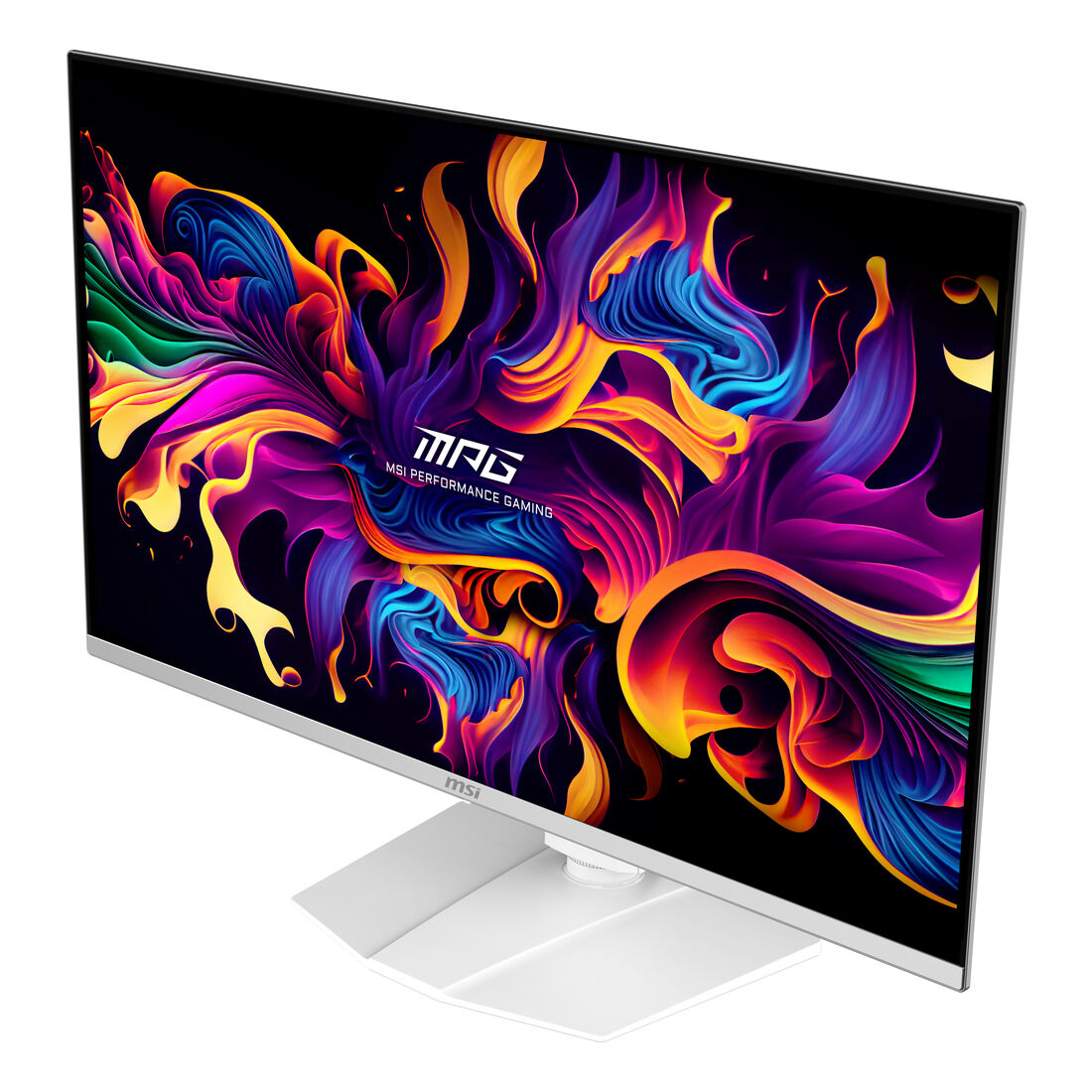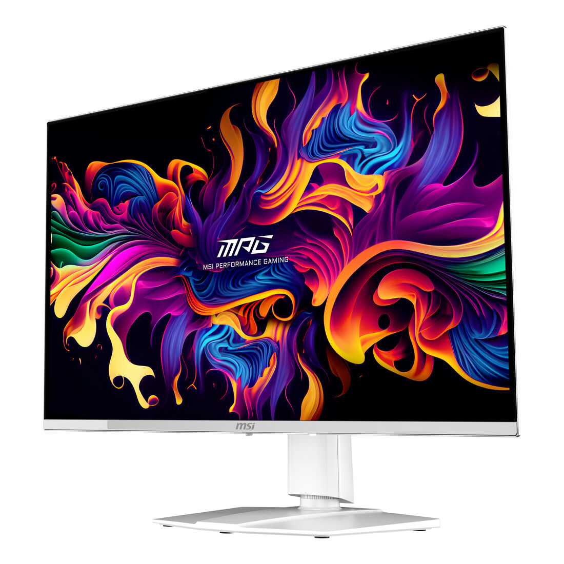 MSI MPG 321URXW QD-OLED. Dimensioni diagonale schermo: 80 cm (31.5″), Risoluzione del display: 3840 x 2160 Pixel, Tipologia HD: 4K Ultra HD, Tecnologia display: QD-OLED, Tempo di risposta: 0,03 ms, Rapporto d’aspetto nativo: 16:9, Angolo di visualizzazione (orizzontale): 178°, Angolo di visualizzazione (verticale): 178°. Hub USB integrato. Montaggio standard VESA, Regolazione altezza. Colore del prodotto: Bianco