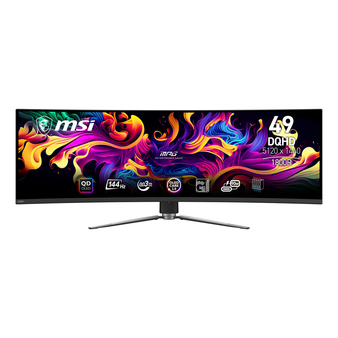 MSI MPG 491CQP QD-OLED. Dimensioni diagonale schermo: 124,5 cm (49″), Risoluzione del display: 5120 x 1440 Pixel, Tipologia HD: DQHD, Tecnologia display: QD-OLED, Tempo di risposta: 0,03 ms, Rapporto d’aspetto nativo: 32:9, Angolo di visualizzazione (orizzontale): 178°, Angolo di visualizzazione (verticale): 178°. Hub USB integrato. Montaggio standard VESA, Regolazione altezza. Colore del prodotto: Nero