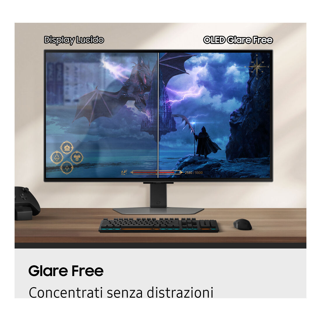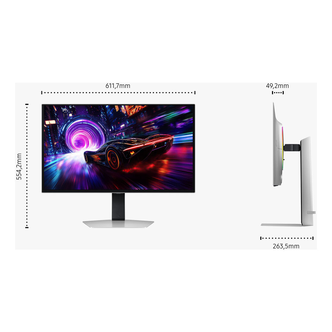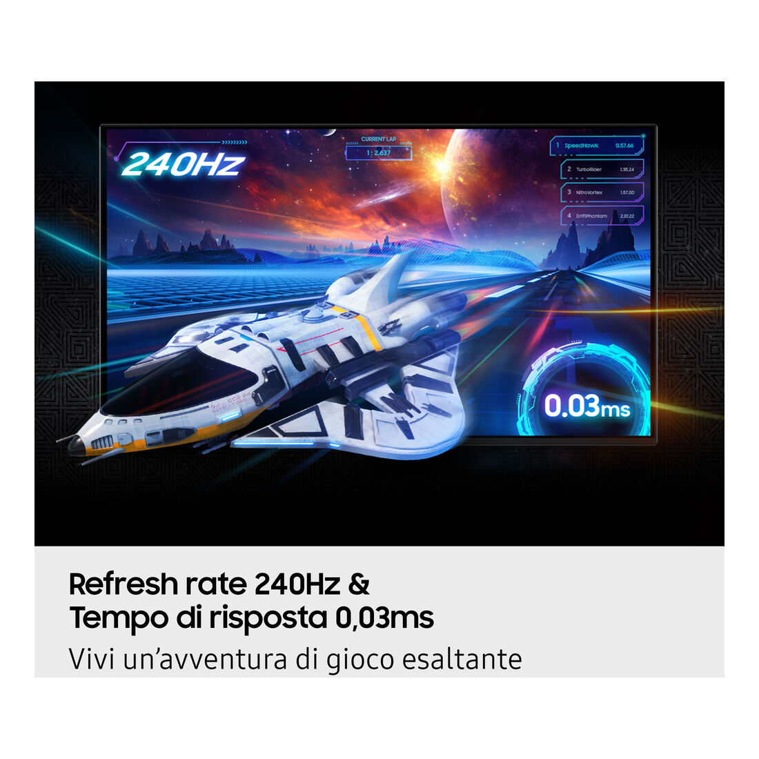 Samsung Monitor Gaming Odyssey OLED G8 – G81SF da 27” UHD. Dimensioni diagonale schermo: 68,6 cm (27″), Risoluzione del display: 3840 x 2160 Pixel, Tipologia HD: 4K Ultra HD, Tecnologia display: OLED, Tempo di risposta: 0,03 ms, Rapporto d’aspetto nativo: 16:9, Angolo di visualizzazione (orizzontale): 178°, Angolo di visualizzazione (verticale): 178°. Hub USB integrato, Versione dell’hub USB: 3.2 Gen 1 (3.1 Gen 1). Montaggio standard VESA, Regolazione altezza. Colore del prodotto: Argento