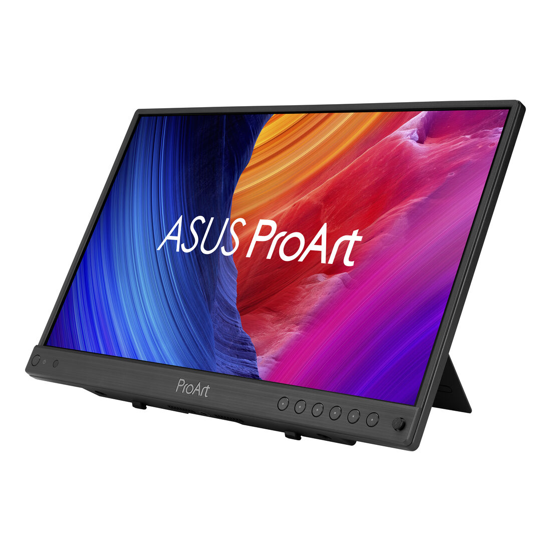 ASUS ProArt PA16USV. Dimensioni diagonale schermo: 39,6 cm (15.6″), Risoluzione del display: 3840 x 2160 Pixel, Tipologia HD: 4K Ultra HD, Tecnologia display: LCD, Tempo di risposta: 5 ms, Rapporto d’aspetto nativo: 16:9, Angolo di visualizzazione (orizzontale): 170°, Angolo di visualizzazione (verticale): 170°. Hub USB integrato, Versione dell’hub USB: 3.2 Gen 1 (3.1 Gen 1). Montaggio standard VESA. Colore del prodotto: Nero