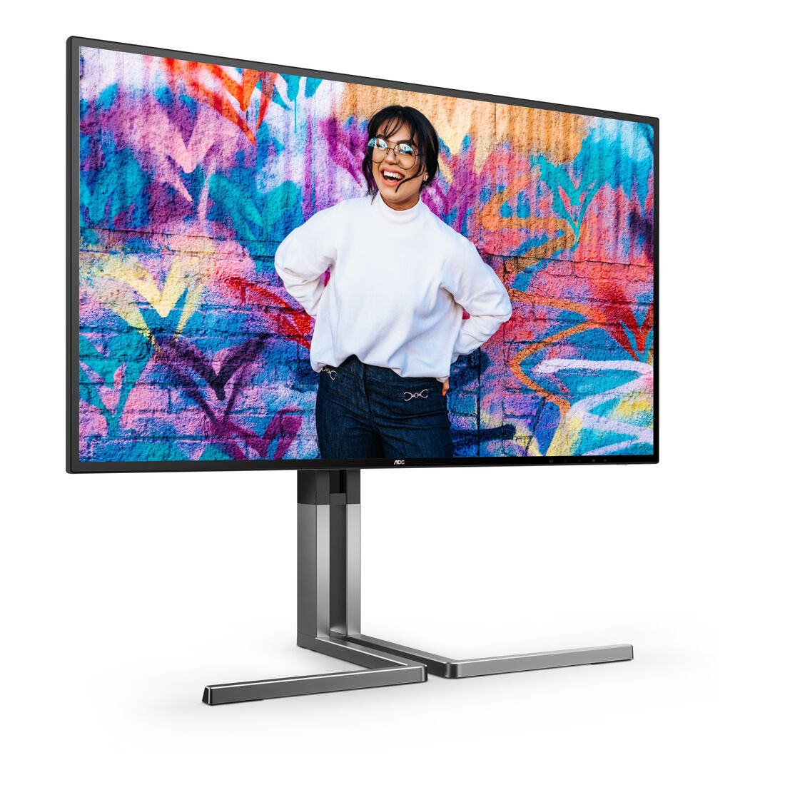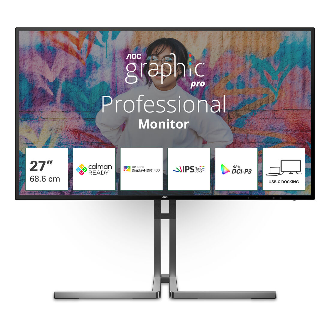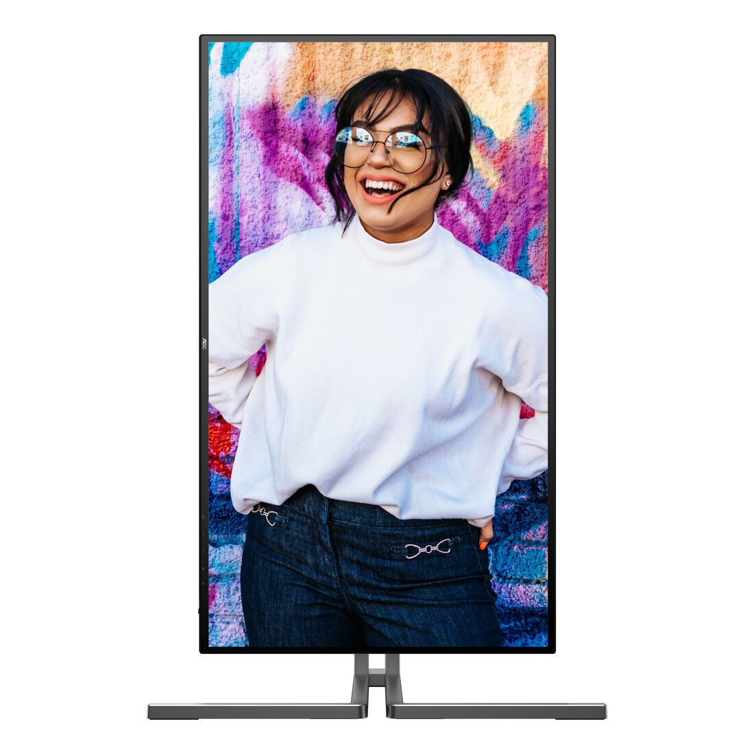 AOC U3 U27U3CV. Dimensioni diagonale schermo: 68,6 cm (27″), Risoluzione del display: 3840 x 2160 Pixel, Tipologia HD: 4K Ultra HD, Tecnologia display: LCD, Tempo di risposta: 4 ms, Rapporto d’aspetto nativo: 16:9, Angolo di visualizzazione (orizzontale): 178°, Angolo di visualizzazione (verticale): 178°. Altoparlanti incorporati. Hub USB integrato, Versione dell’hub USB: 3.2 Gen 2 (3.1 Gen 2). Montaggio standard VESA, Regolazione altezza. Colore del prodotto: Nero