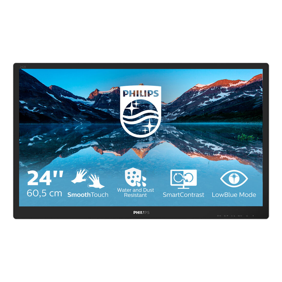 Philips 242B9TN/00. Dimensioni diagonale schermo: 60,5 cm (23.8″), Risoluzione del display: 1920 x 1080 Pixel, Tipologia HD: Full HD, Tecnologia display: LCD, Superficie display: Lucida, Tempo di risposta: 5 ms, Rapporto d’aspetto nativo: 16:9, Angolo di visualizzazione (orizzontale): 178°, Angolo di visualizzazione (verticale): 178°. Altoparlanti incorporati. Hub USB integrato. Montaggio standard VESA. Colore del prodotto: Nero