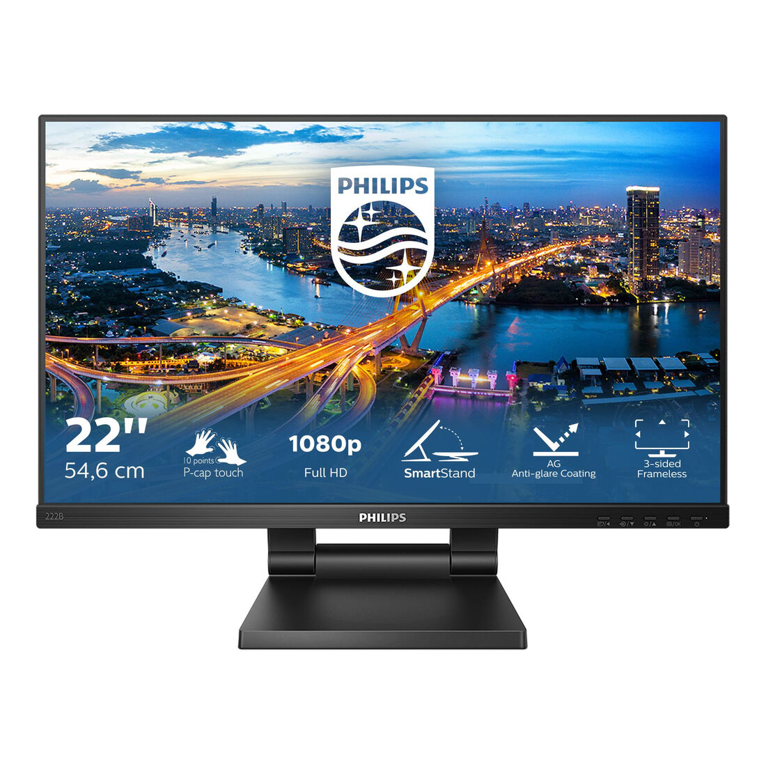 Philips B Line 222B1TC/00. Dimensioni diagonale schermo: 54,6 cm (21.5″), Risoluzione del display: 1920 x 1080 Pixel, Tipologia HD: Full HD, Tecnologia display: LED, Tempo di risposta: 4 ms, Rapporto d’aspetto nativo: 16:9, Angolo di visualizzazione (orizzontale): 178°, Angolo di visualizzazione (verticale): 178°. Altoparlanti incorporati. Hub USB integrato. Montaggio standard VESA, Regolazione altezza. Colore del prodotto: Nero