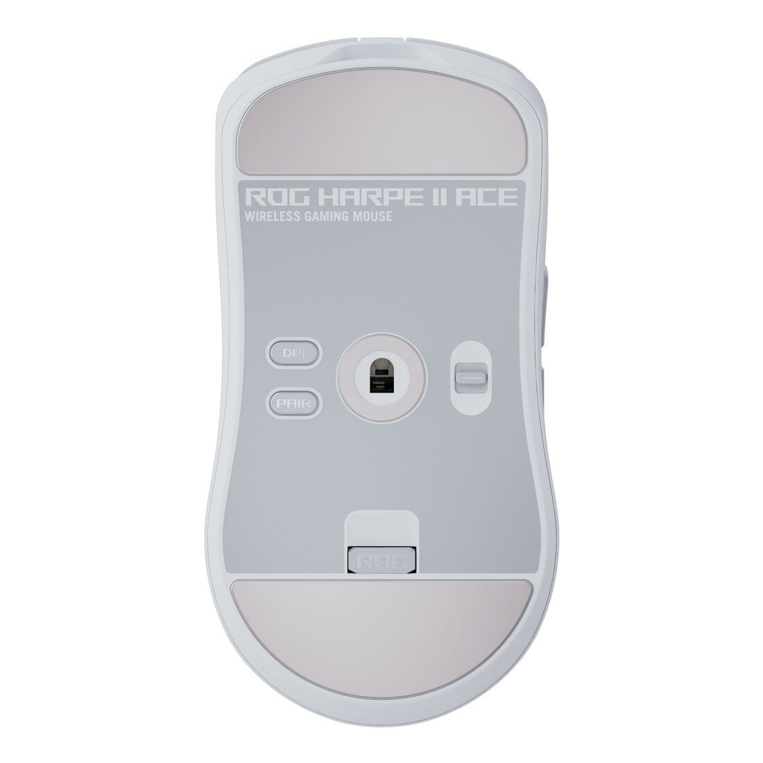 ASUS ROG Harpe II Ace. Fattore di forma: Mano destra. Tecnologia di rilevamento del movimento: Ottico, Interfaccia dispositivo: RF Wireless + Bluetooth + USB Type-A, Risoluzione movimento: 42000 DPI, Tipo di pulsanti: Tasti premuti, Numero di tasti: 5, Tipo di scorimmento: Rotella, Accelerazione (max): 50 G. Alimentazione: Batterie/Cavo. Colore del prodotto: Bianco
