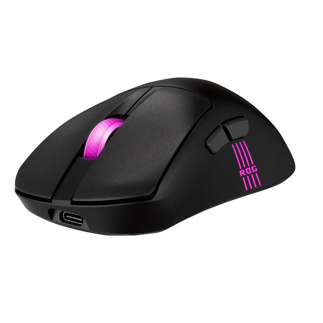 ASUS ROG Keris II Origin BLK. Fattore di forma: Mano destra. Tecnologia di rilevamento del movimento: Ottico, Interfaccia dispositivo: RF Wireless + Bluetooth + USB Type-A, Risoluzione movimento: 42000 DPI, Tipo di pulsanti: Tasti premuti, Numero di tasti: 6, Tipo di scorimmento: Rotella. colore d’illuminazione: Multi. Alimentazione: Batterie/Cavo. Colore del prodotto: Nero