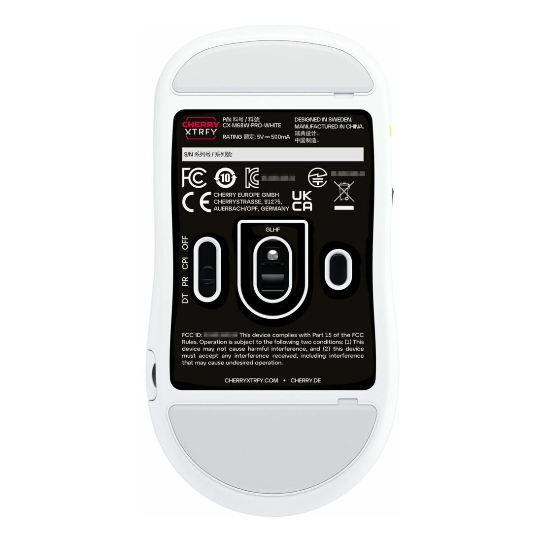CHERRY XTRFY M68 Pro Wireless. Fattore di forma: Mano destra. Interfaccia dispositivo: RF Wireless, Risoluzione movimento: 26000 DPI, Tipo di pulsanti: Tasti premuti, Numero di tasti: 5, Tipo di scorimmento: Rotella. Alimentazione: Batterie. Colore del prodotto: Nero, Bianco