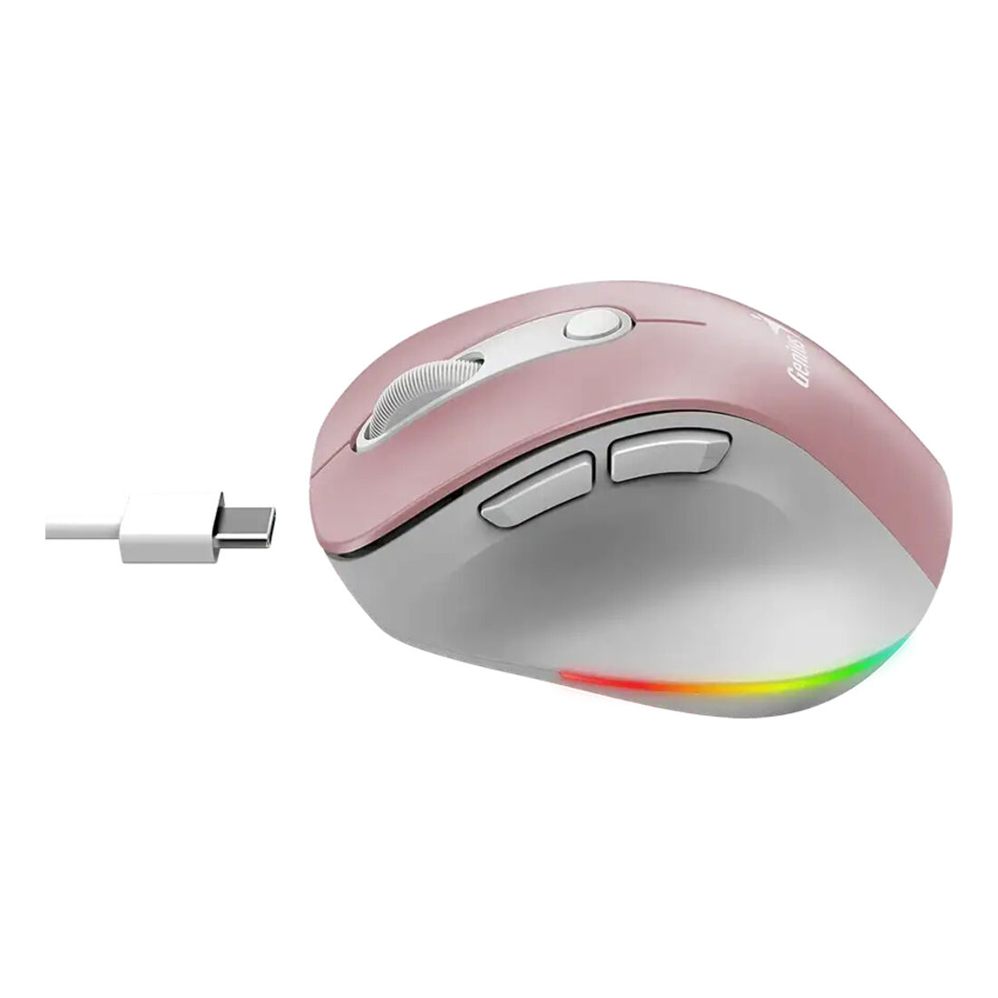 Genius Ergo 9000S Pro. Fattore di forma: Mano destra. Tecnologia di rilevamento del movimento: Ottico, Interfaccia dispositivo: RF senza fili + Bluetooth, Risoluzione movimento: 2400 DPI, Tipo di pulsanti: Tasti premuti, Numero di tasti: 6, Tipo di scorimmento: Rotella. Alimentazione: Batterie. Colore del prodotto: Grigio, Rosa