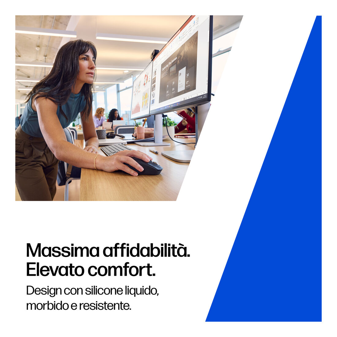 HP Mouse wireless ricaricabile 705. Larghezza: 118 mm, Profondità: 61 mm, Altezza: 40 mm. Larghezza imballo: 133 mm, Profondità imballo: 90,5 mm, Altezza imballo: 55 mm