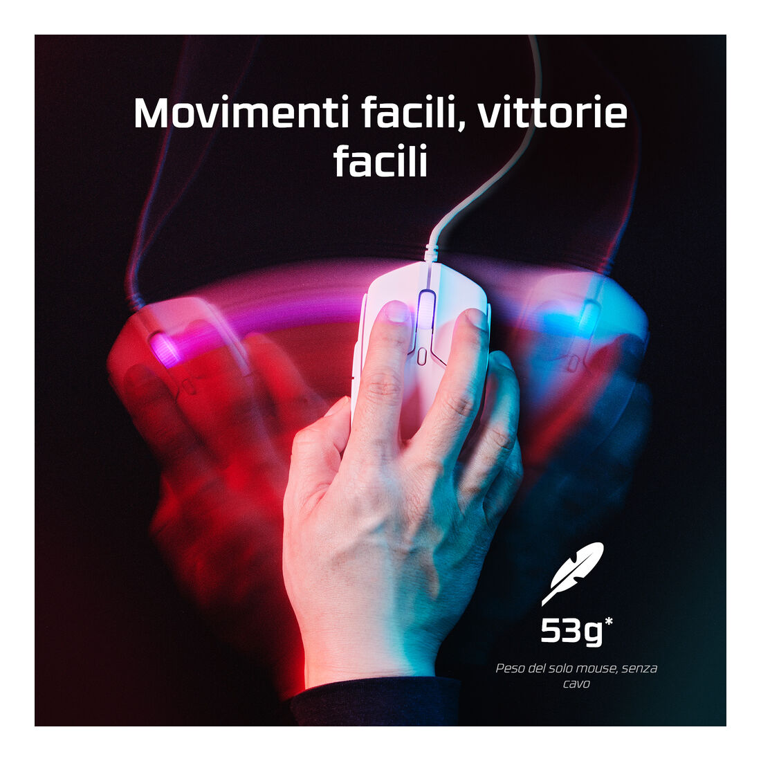 Pulsefire Haste 2 – Mouse da gaming (nero). Fattore di forma: Ambidestro. Interfaccia dispositivo: USB tipo A, Risoluzione movimento: 26000 DPI, Tipo di pulsanti: Tasti premuti, Numero di tasti: 6, Tipo di scorimmento: Rotella, Accelerazione (max): 50 G. Alimentazione: Cavo. Colore del prodotto: Nero
