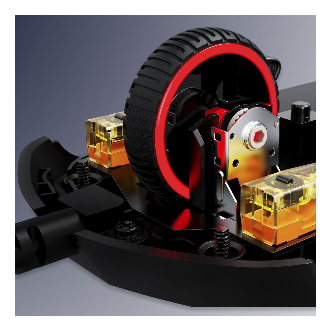 Pulsefire Haste – Gaming mouse (nero-rosso). Fattore di forma: Ambidestro. Tecnologia di rilevamento del movimento: Ottico, Interfaccia dispositivo: USB tipo A, Risoluzione movimento: 16000 DPI, Tipo di pulsanti: Tasti premuti, Numero di tasti: 6, Tipo di scorimmento: Rotella, Accelerazione (max): 40 G. Alimentazione: Cavo. Colore del prodotto: Nero, Rosso