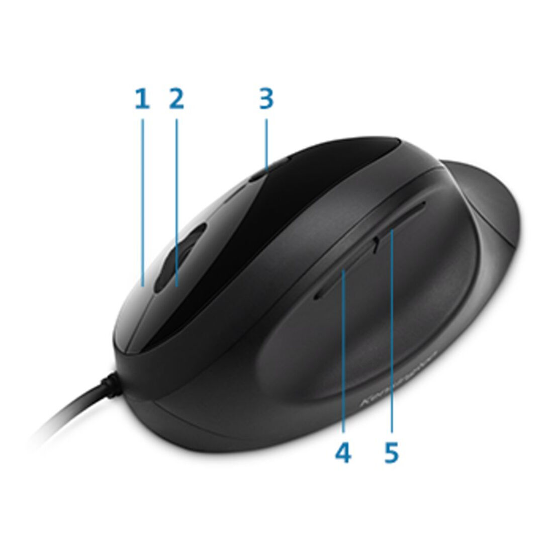 Kensington Mouse Pro Fit® Ergo con cavo. Fattore di forma: Mano destra. Tecnologia di rilevamento del movimento: Ottico, Interfaccia dispositivo: USB tipo A, Risoluzione movimento: 3200 DPI, Tipo di pulsanti: Tasti premuti, Numero di tasti: 5, Tipo di scorimmento: Rotella. Alimentazione: Cavo. Funziona su tutte le superfici. Colore del prodotto: Nero