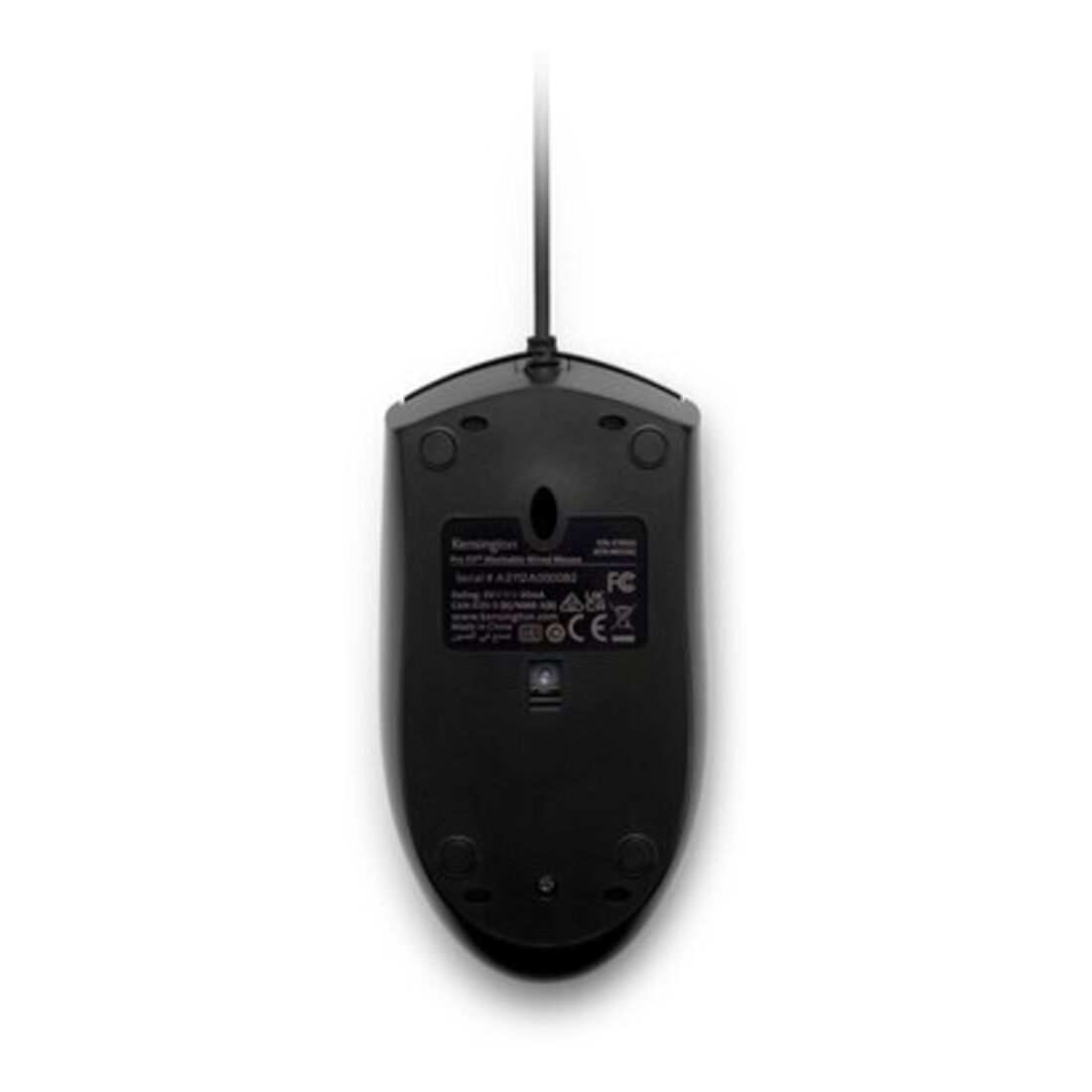 Kensington Mouse Pro Fit® lavabile con cavo. Fattore di forma: Ambidestro. Tecnologia di rilevamento del movimento: Ottico, Interfaccia dispositivo: USB, Risoluzione movimento: 1600 DPI, Tipo di pulsanti: Tasti premuti, Numero di tasti: 3, Tipo di scorimmento: Trackball/rotella. Alimentazione: Cavo. Colore del prodotto: Nero