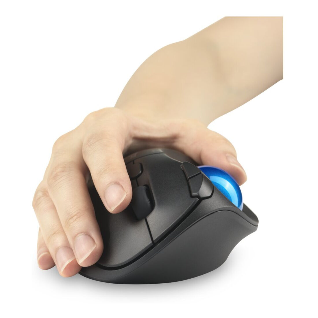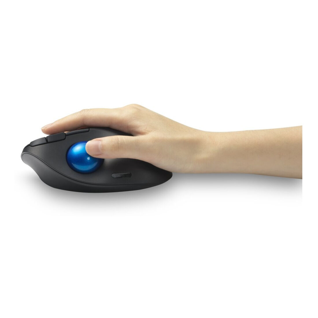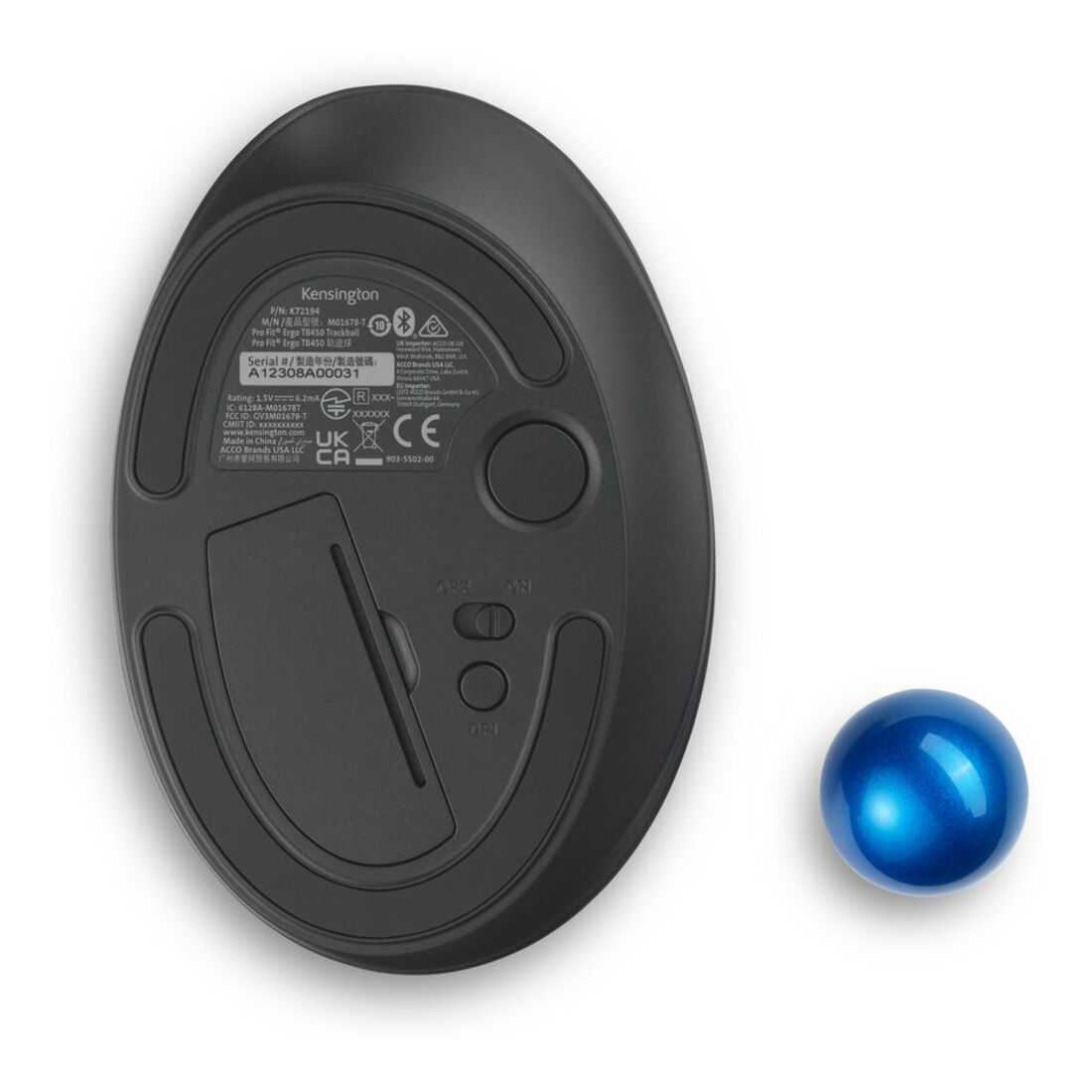 Kensington Pro Fit Ergo TB450. Fattore di forma: Mano destra. Tecnologia di rilevamento del movimento: Trackball, Interfaccia dispositivo: RF senza fili + Bluetooth, Risoluzione movimento: 1600 DPI, Tipo di pulsanti: Tasti premuti, Numero di tasti: 7, Tipo di scorimmento: Trackball/rotella. Alimentazione: Batterie. Colore del prodotto: Nero, Blu