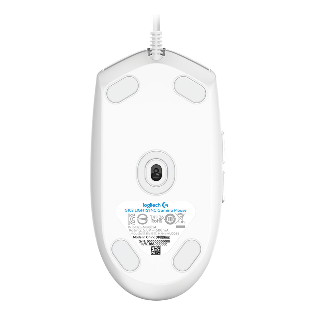Logitech G 910-005824. Interfaccia dispositivo: USB tipo A, Risoluzione movimento: 8000 DPI, Tempo di risposta: 1 ms, Tipo di pulsanti: Tasti premuti, Numero di tasti: 6, Tipo di scorimmento: Rotella. colore d’illuminazione: Multi. Alimentazione: Cavo. Colore del prodotto: Bianco