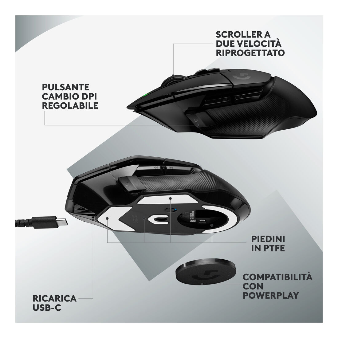 Logitech G502 X LIGHTSPEED Mouse Gaming Wireless – Mouse Ottico con Switch Ottico-Meccanici Ibridi LIGHTFORCE, Sensore per Gaming HERO 25K, Compatibile con PC – macOS/Windows, Nero