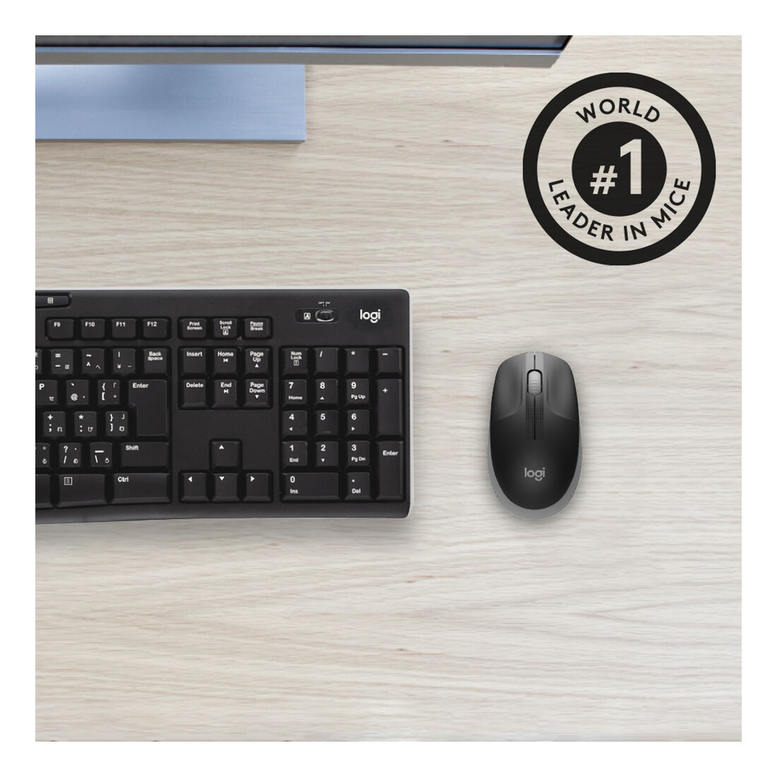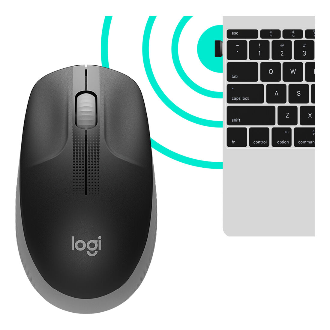 Logitech M190. Fattore di forma: Ambidestro. Tecnologia di rilevamento del movimento: Ottico, Interfaccia dispositivo: RF Wireless, Risoluzione movimento: 1000 DPI, Tipo di pulsanti: Tasti premuti, Numero di tasti: 3, Tipo di scorimmento: Rotella. Alimentazione: Batterie. Colore del prodotto: Grigio