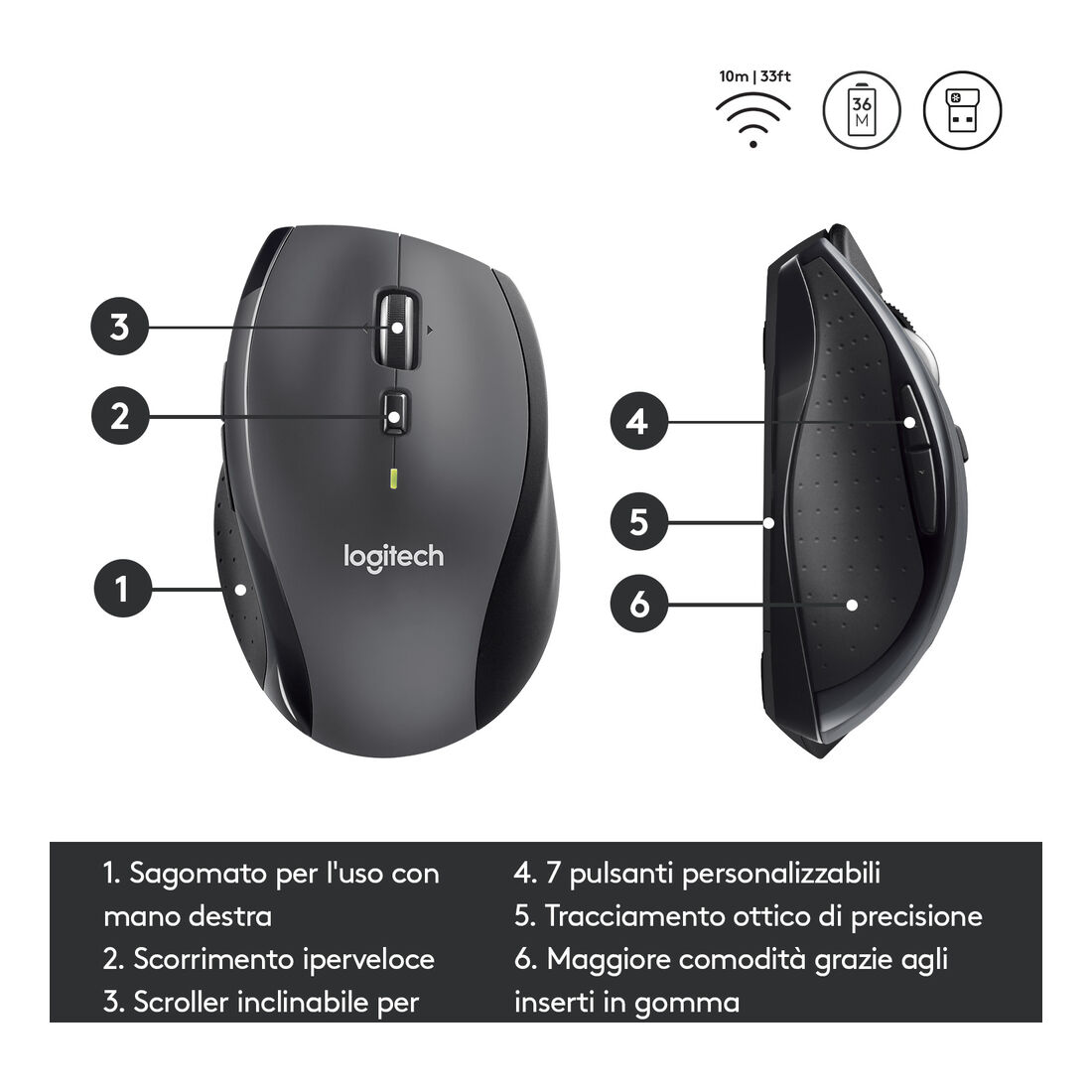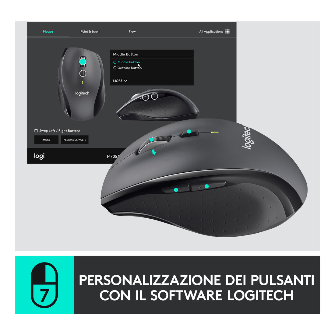 Logitech M705 Marathon Mouse Wireless, Ricevitore USB Unifying 2,4 GHz, 1000 DPI, 5 Pulsanti Programmabili, Durata Batteria di 3 Anni, Compatibile con PC, Mac, Laptop, Chromebook
