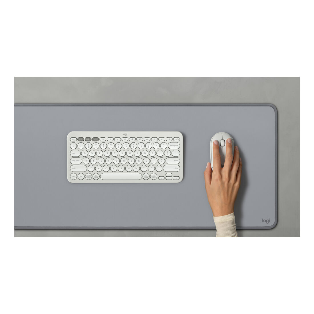 Logitech 910-007013. Fattore di forma: Ambidestro. Tecnologia di rilevamento del movimento: Ottico, Interfaccia dispositivo: RF senza fili + Bluetooth, Risoluzione movimento: 4000 DPI, Tipo di pulsanti: Tasti premuti, Numero di tasti: 3, Tipo di scorimmento: Rotella. Alimentazione: Batterie. Colore del prodotto: Bianco