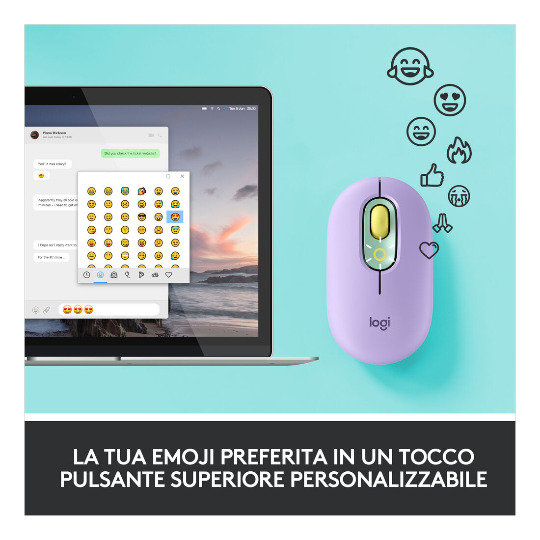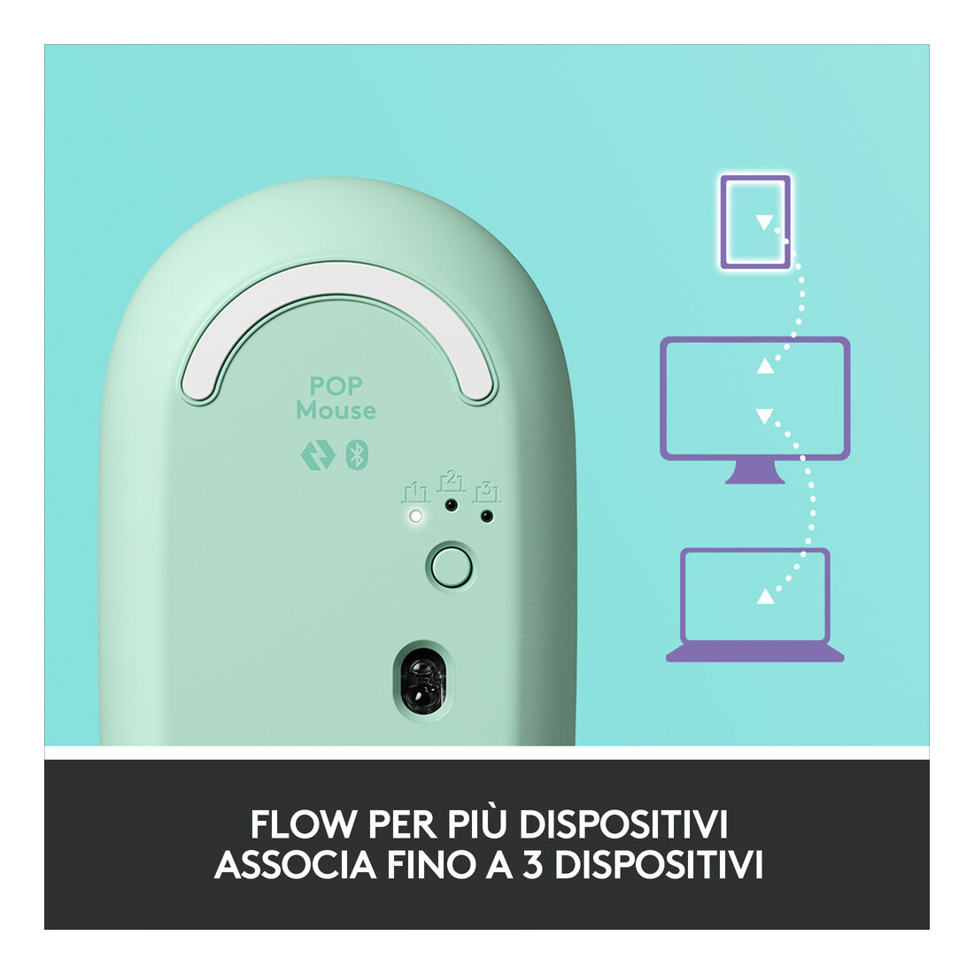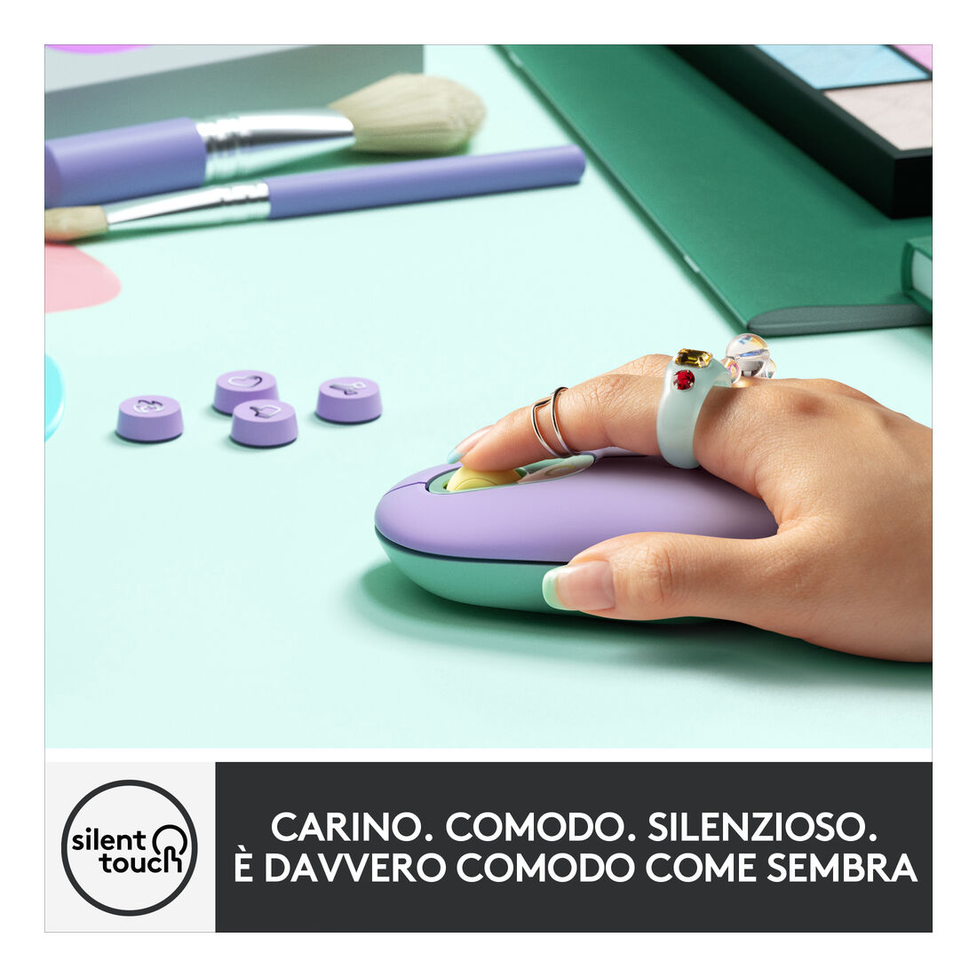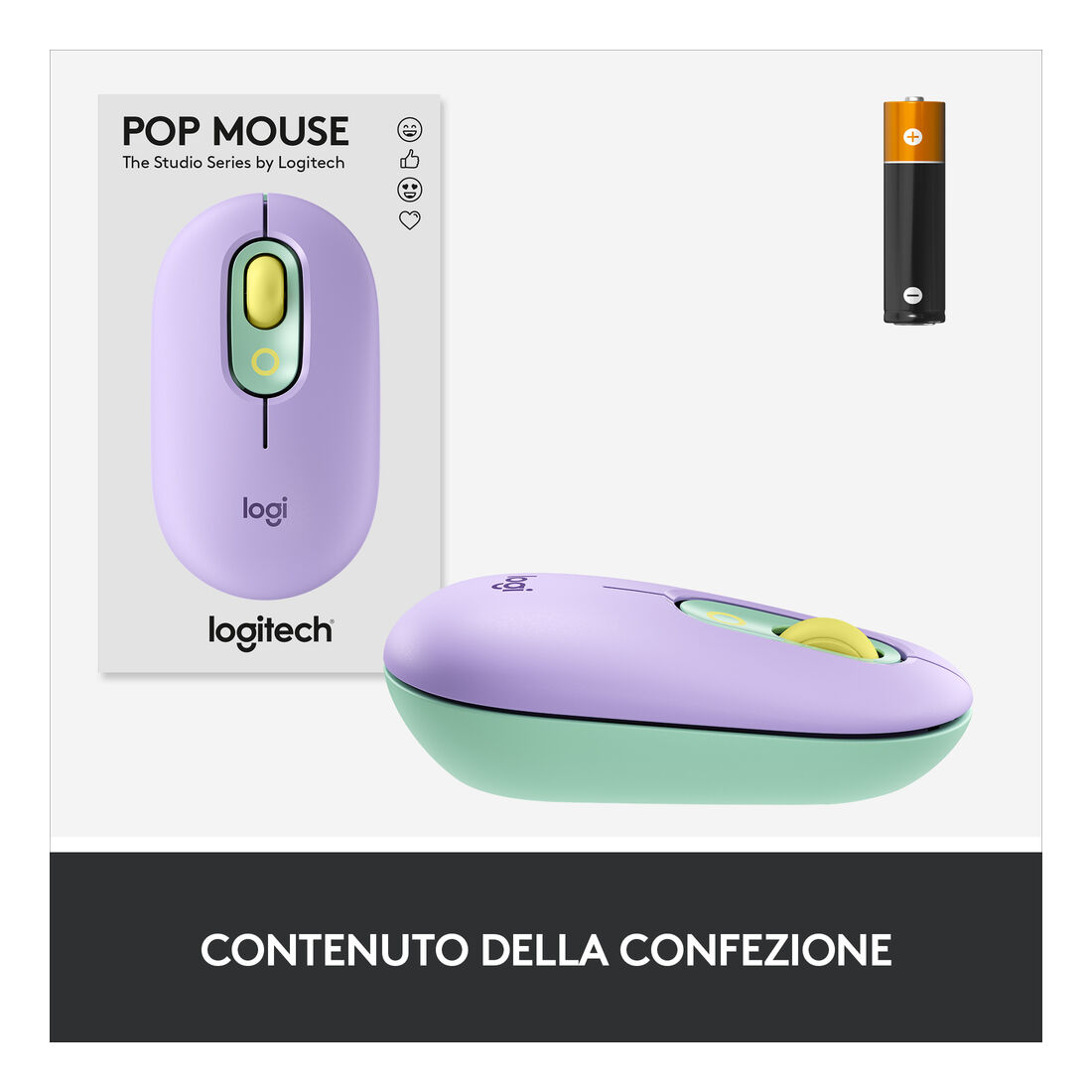 Logitech POP Mouse Wireless con Emoji personalizzabili, Tecnologia SilentTouch, Precisione e Velocità, Design Compatto, Bluetooth, USB, Multidispositivo, Compatibile OS – Daydream. Fattore di forma: Ambidestro. Tecnologia di rilevamento del movimento: Ottico, Interfaccia dispositivo: RF senza fili + Bluetooth, Risoluzione movimento: 4000 DPI, Tipo di pulsanti: Tasti premuti, Numero di tasti: 4, Tipo di scorimmento: Rotella. Alimentazione: Batterie. Colore del prodotto: Verde