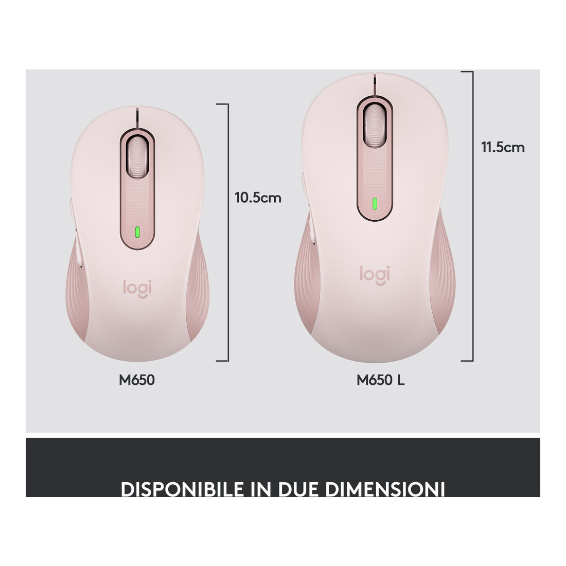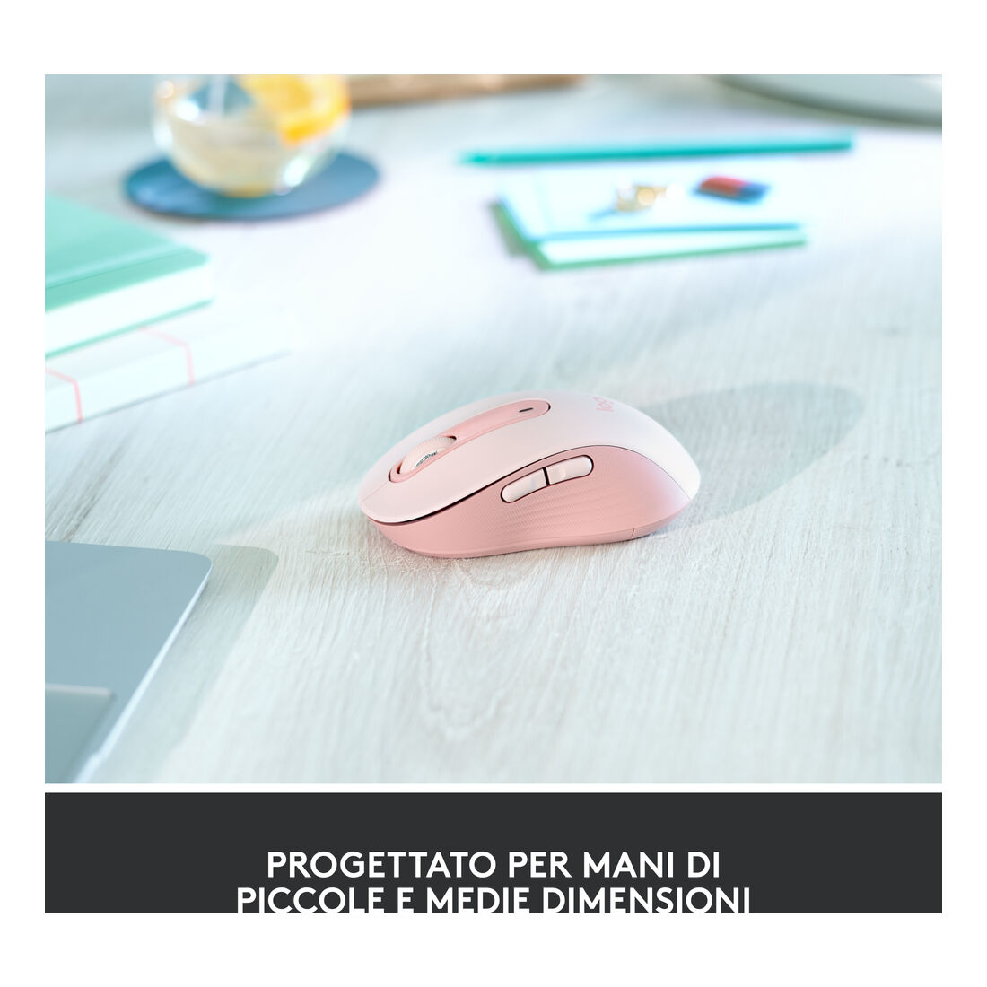 Logitech Signature M650 Mouse Wireless – Per Mani di Piccole Dimensioni, Durata Batteria 2 anni, Clic Silenziosi, Tasti Personalizzabili, Bluetooth, Compatibilità Multidispositivo. Colore Rosa