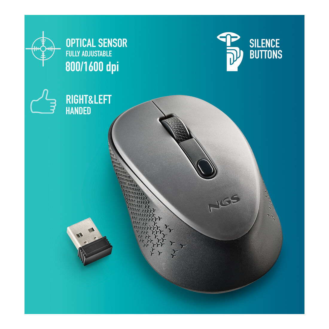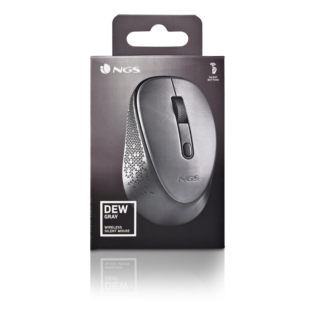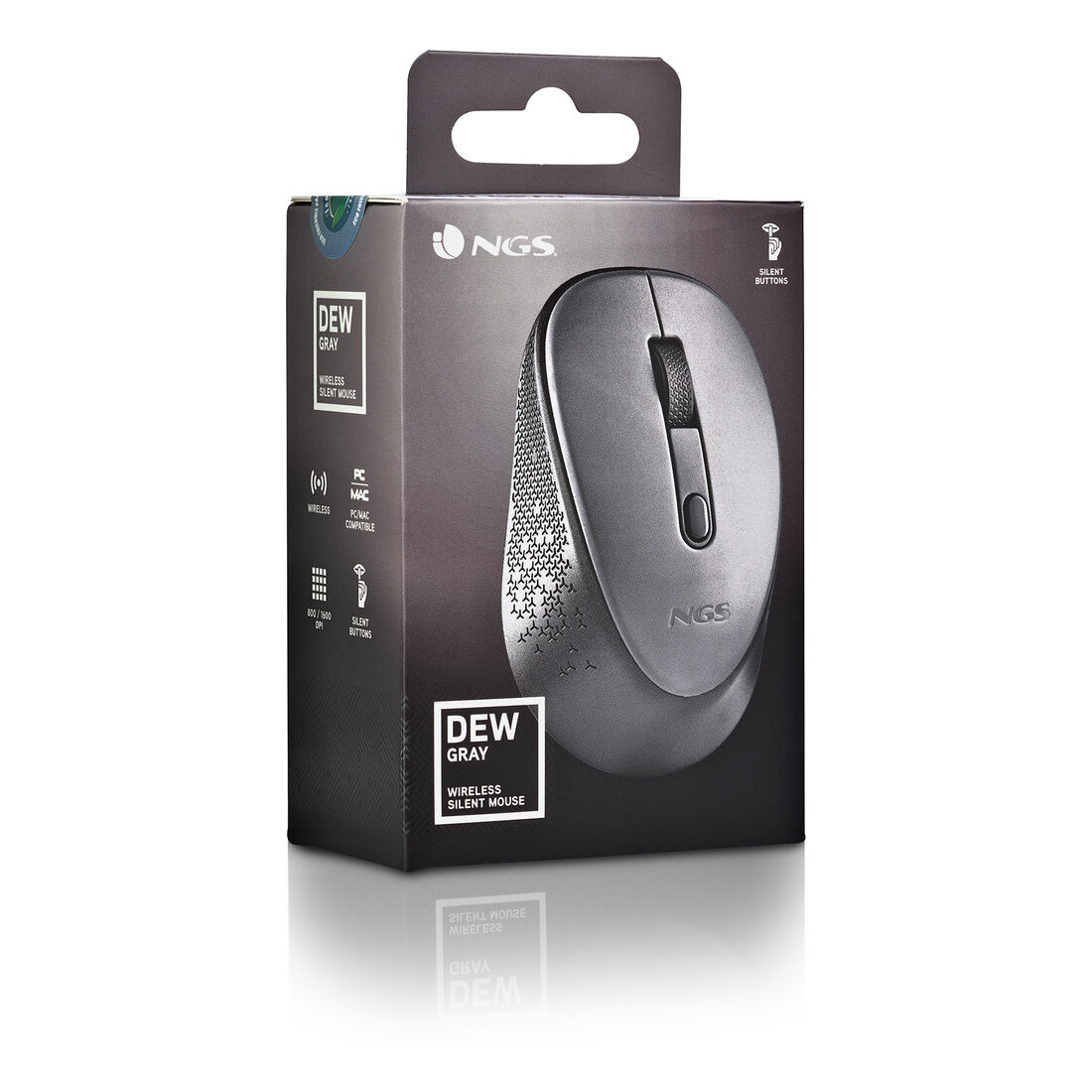 NGS DEW. Fattore di forma: Ambidestro. Tecnologia di rilevamento del movimento: Ottico, Interfaccia dispositivo: RF Wireless, Risoluzione movimento: 1600 DPI, Tipo di pulsanti: Tasti premuti, Numero di tasti: 2, Tipo di scorimmento: Rotella. Alimentazione: Batterie. Funziona su tutte le superfici. Colore del prodotto: Grigio