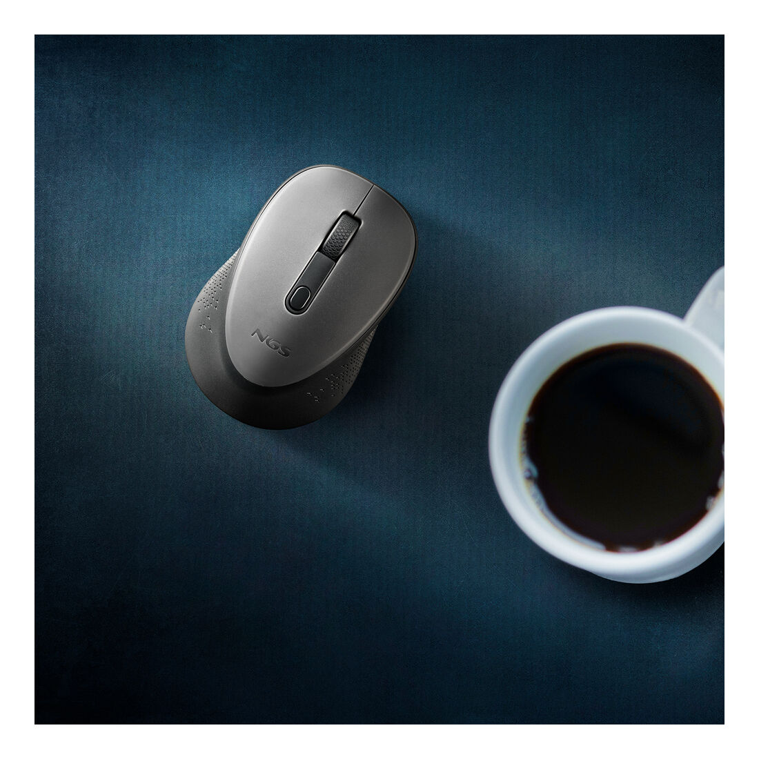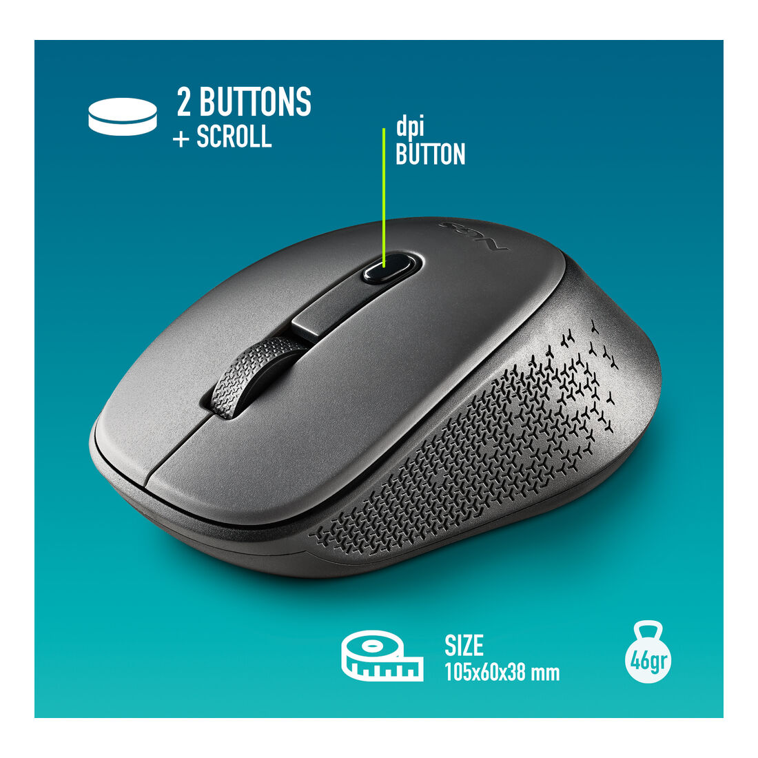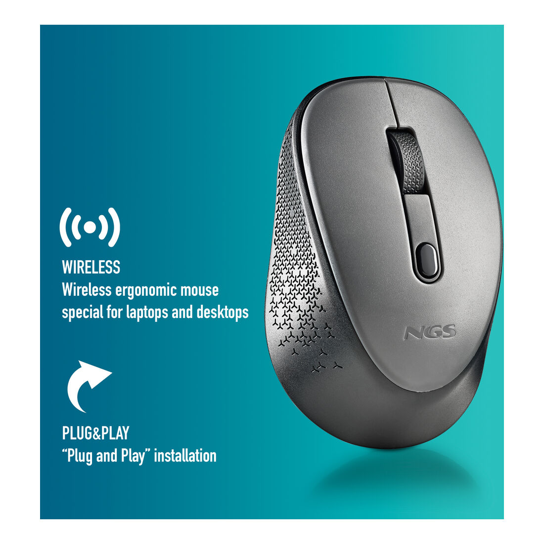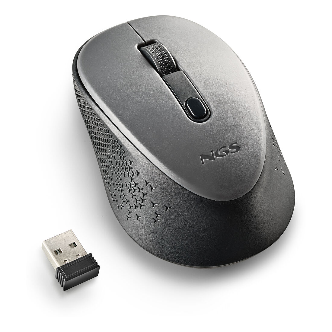 NGS DEW. Fattore di forma: Ambidestro. Tecnologia di rilevamento del movimento: Ottico, Interfaccia dispositivo: RF Wireless, Risoluzione movimento: 1600 DPI, Tipo di pulsanti: Tasti premuti, Numero di tasti: 2, Tipo di scorimmento: Rotella. Alimentazione: Batterie. Funziona su tutte le superfici. Colore del prodotto: Grigio