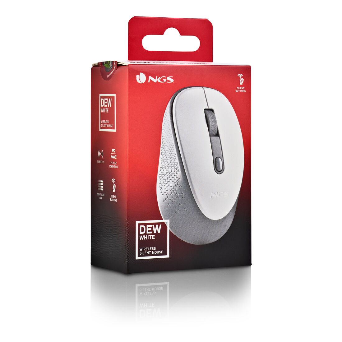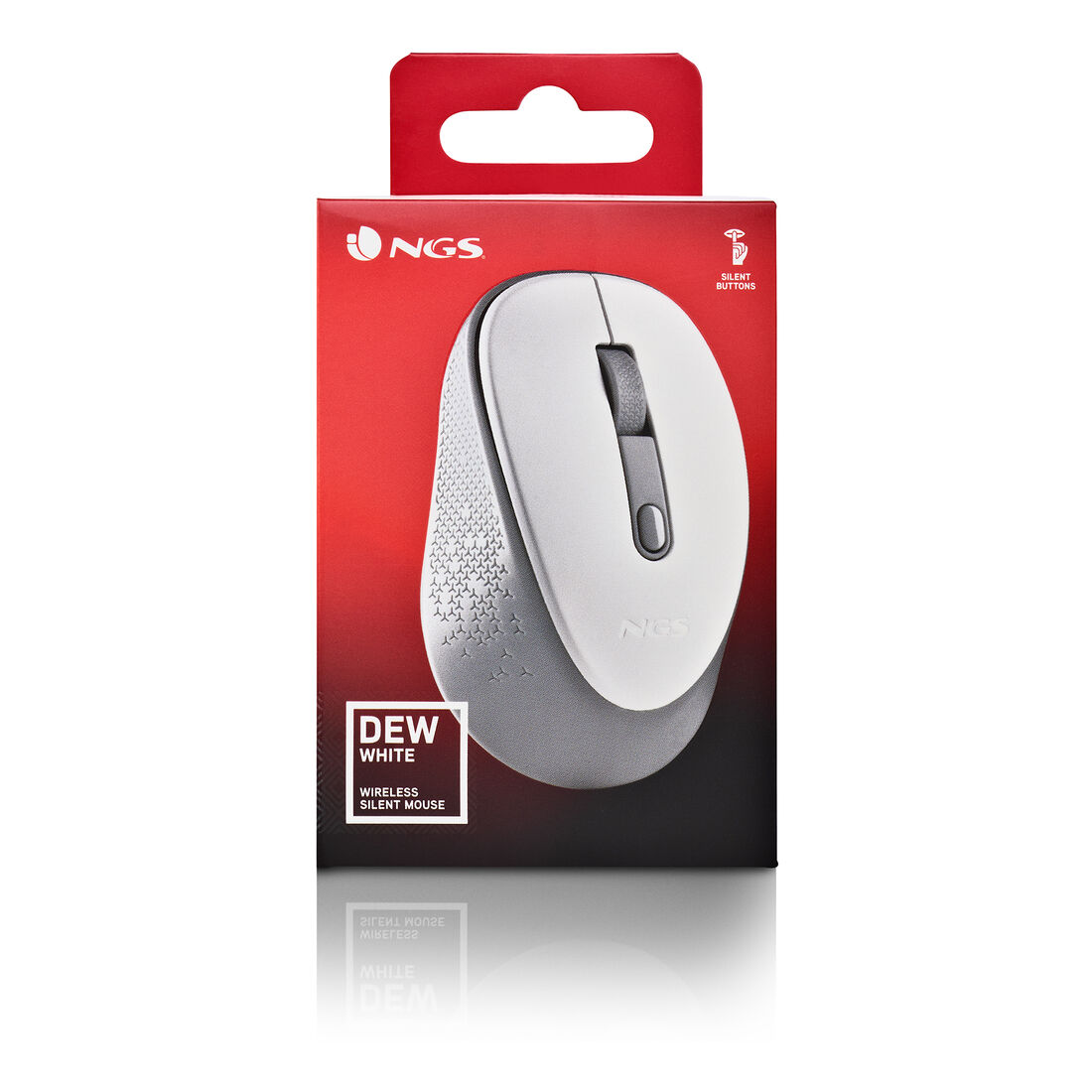 NGS DEW. Fattore di forma: Ambidestro. Tecnologia di rilevamento del movimento: Ottico, Interfaccia dispositivo: RF Wireless, Risoluzione movimento: 1600 DPI, Tipo di pulsanti: Tasti premuti, Numero di tasti: 2, Tipo di scorimmento: Rotella. Alimentazione: Batterie. Funziona su tutte le superfici. Colore del prodotto: Bianco