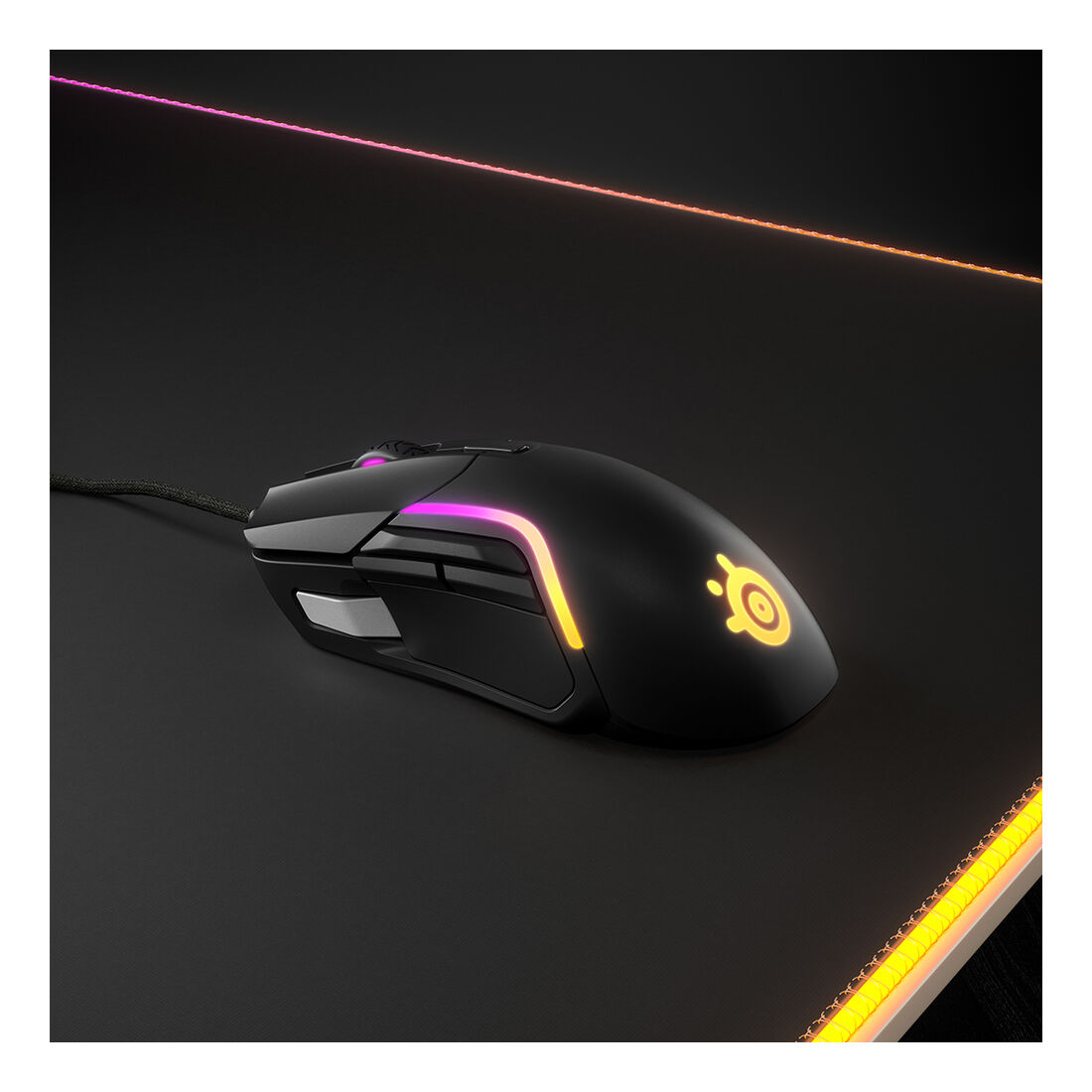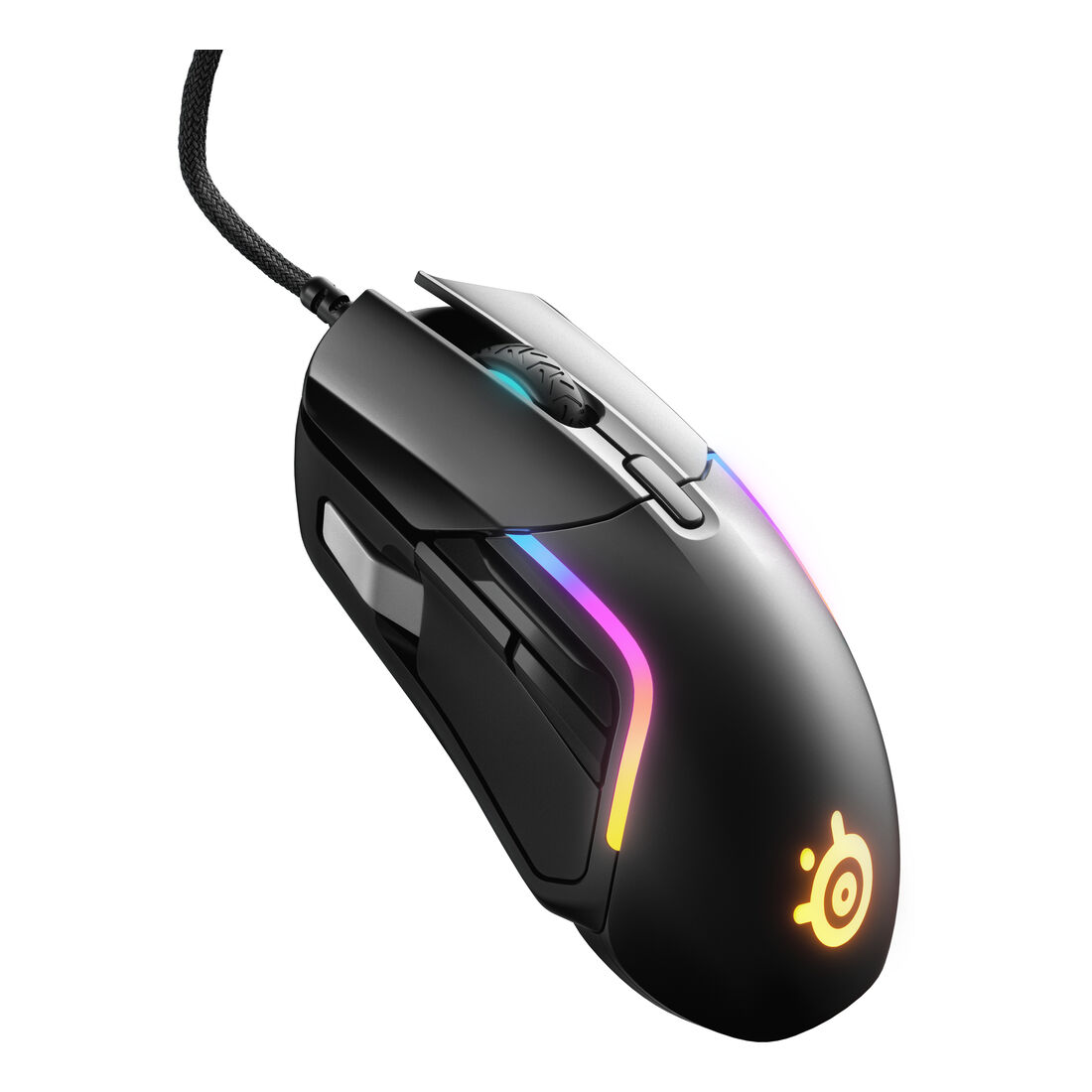 Steelseries Rival 5 PC Mouse. Fattore di forma: Mano destra. Tecnologia di rilevamento del movimento: Ottico, Interfaccia dispositivo: USB tipo A, Risoluzione movimento: 18000 DPI, Tempo di risposta: 1 ms, Tipo di pulsanti: Tasti premuti, Numero di tasti: 9, Tipo di scorimmento: Rotella, Accelerazione (max): 40 G. colore d’illuminazione: Multi. Alimentazione: Cavo. Colore del prodotto: Nero, Grigio
