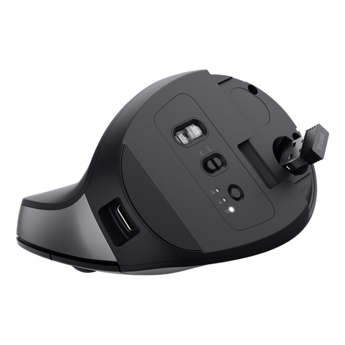 Trust Bayo+. Fattore di forma: Mano destra, Design verticale. Tecnologia di rilevamento del movimento: Ottico, Interfaccia dispositivo: RF senza fili + Bluetooth, Risoluzione movimento: 2400 DPI, Numero di tasti: 6, Tipo di scorimmento: Rotella. Alimentazione: Batterie. Funziona su tutte le superfici. Colore del prodotto: Nero