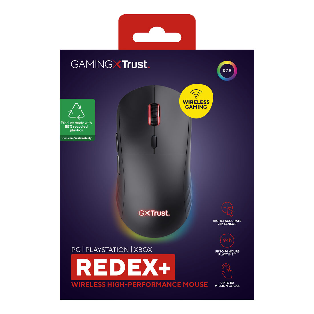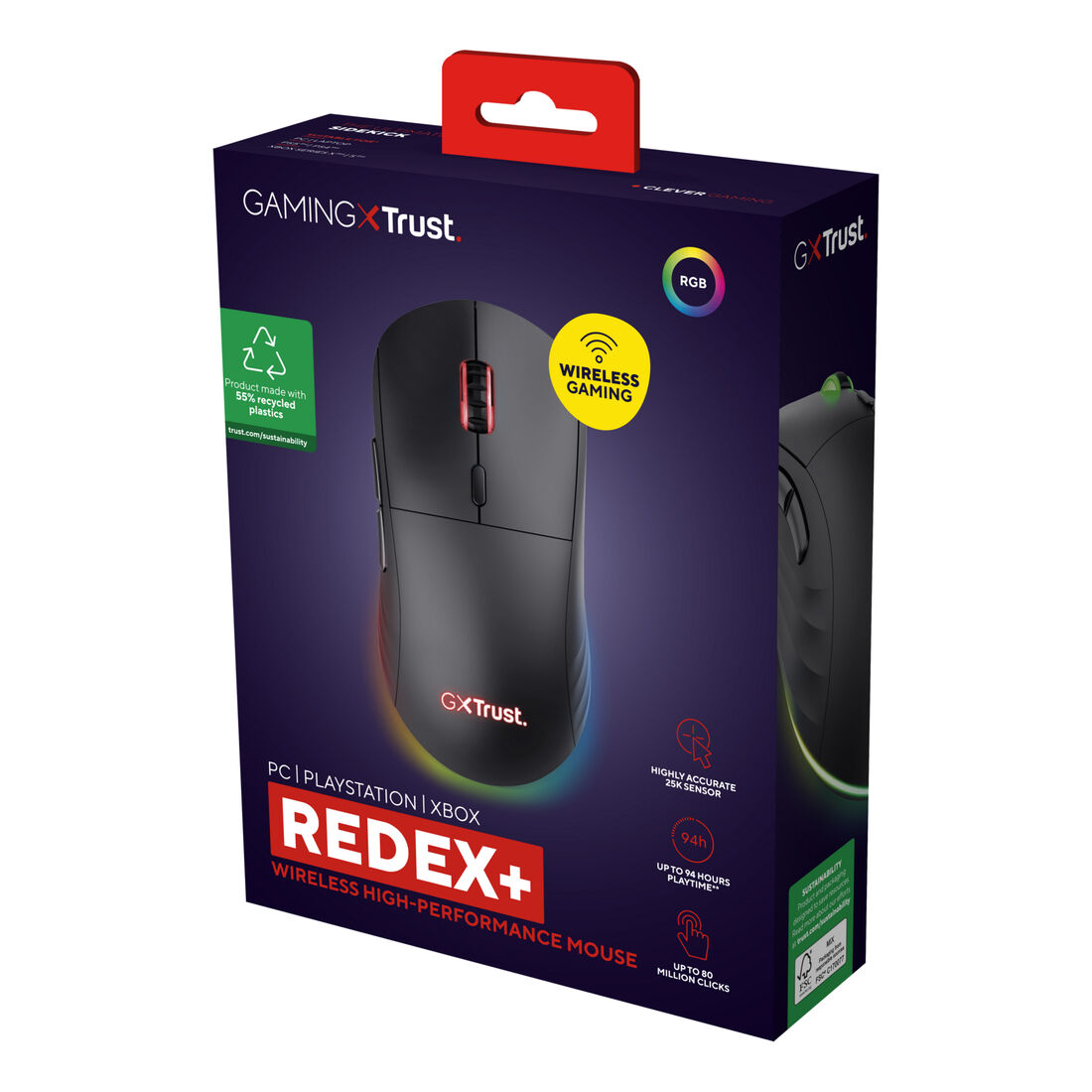 Trust GXT 927 Redex+ mouse Gaming Mano destra RF Wireless + USB Type-A Laser 25600 DPI
