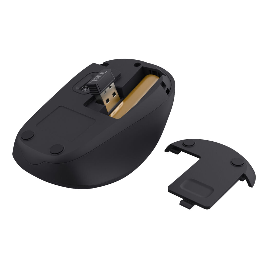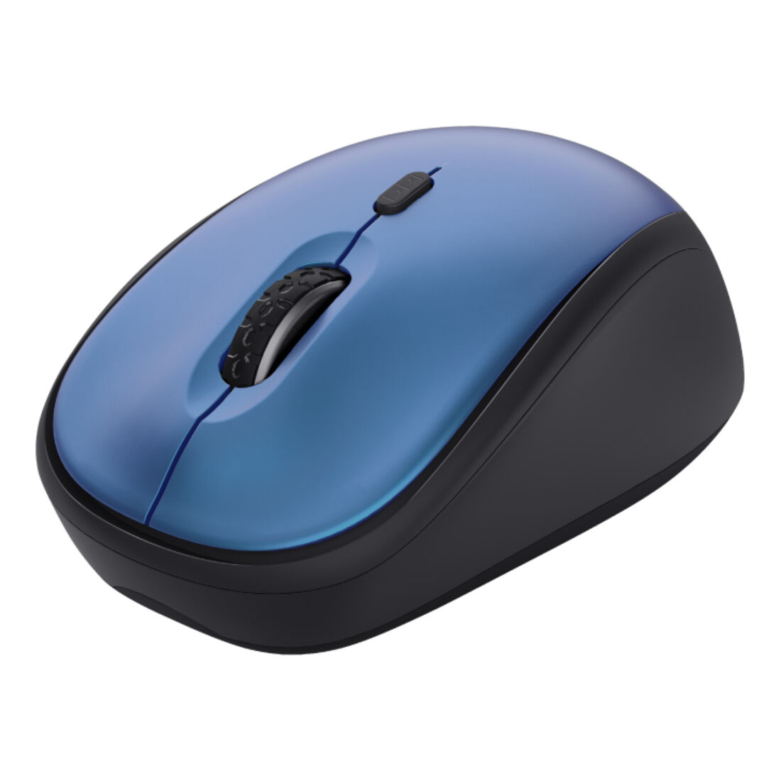 Trust Yvi+. Fattore di forma: Mano destra. Tecnologia di rilevamento del movimento: Ottico, Interfaccia dispositivo: RF Wireless, Risoluzione movimento: 1600 DPI, Tipo di pulsanti: Tasti premuti, Numero di tasti: 4, Tipo di scorimmento: Rotella. Alimentazione: Batterie. Colore del prodotto: Nero, Blu