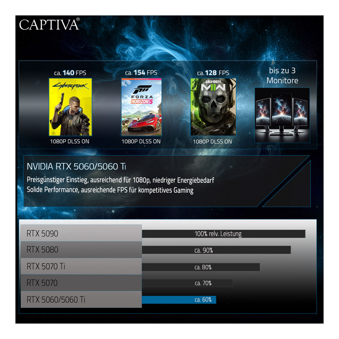 CAPTIVA 94355 laptop Intel Core i7 i7-13620H Computer portatile 43,9 cm (17.3″) Full HD 64 GB DDR5-SDRAM SSD NVIDIA GeForce RTX 5060 Wi-Fi 6E (802.11ax) Windows 11 Home Tedesco Nero