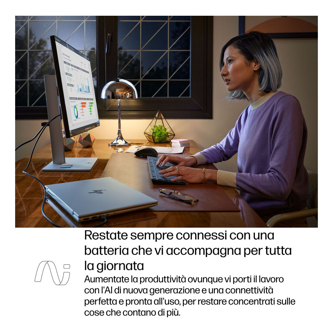 HP EliteBook 6 G1q Next Gen AI. Tipo di prodotto: Computer portatile, Fattore di forma: Clamshell. Famiglia processore: Qualcomm Snapdragon, Modello del processore: X1-26-100, Frequenza del processore: 3 GHz. Dimensioni diagonale schermo: 35,6 cm (14″), Tipologia HD: WUXGA, Risoluzione del display: 1920 x 1200 Pixel. RAM installata: 32 GB, Tipo di RAM: LPDDR5x-SDRAM. Capacità totale di archiviazione: 512 GB, Supporto di memoria: SSD. Modello scheda grafica integrata: Qualcomm Adreno GPU. Sistema operativo incluso: Windows 11 Pro. Colore del prodotto: Argento