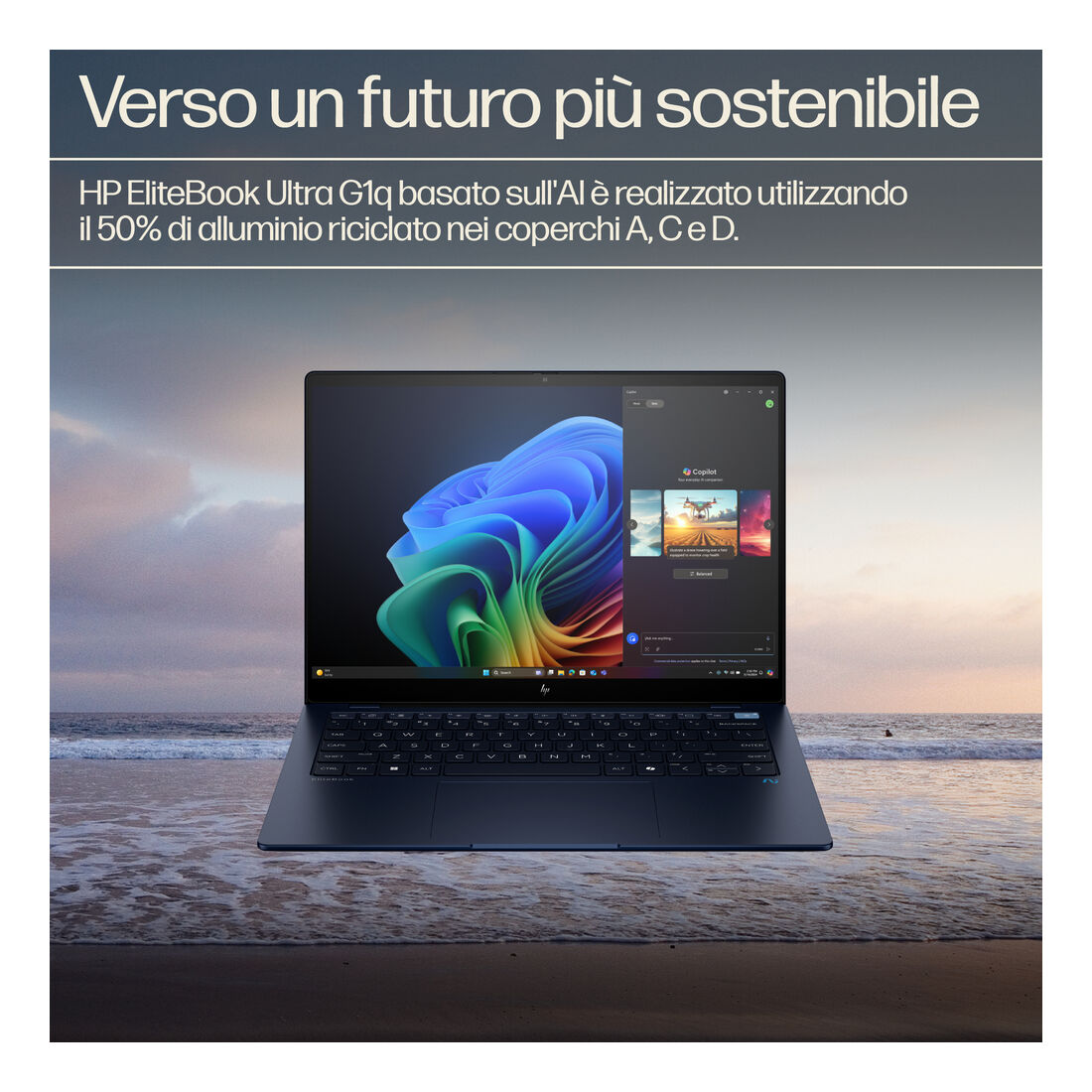 PC notebook HP EliteBook Ultra 14” G1q AI, 14″, Schermo touch, Windows 11 Pro, Qualcomm Snapdragon, 16GB RAM, 512GB SSD, 2.2K