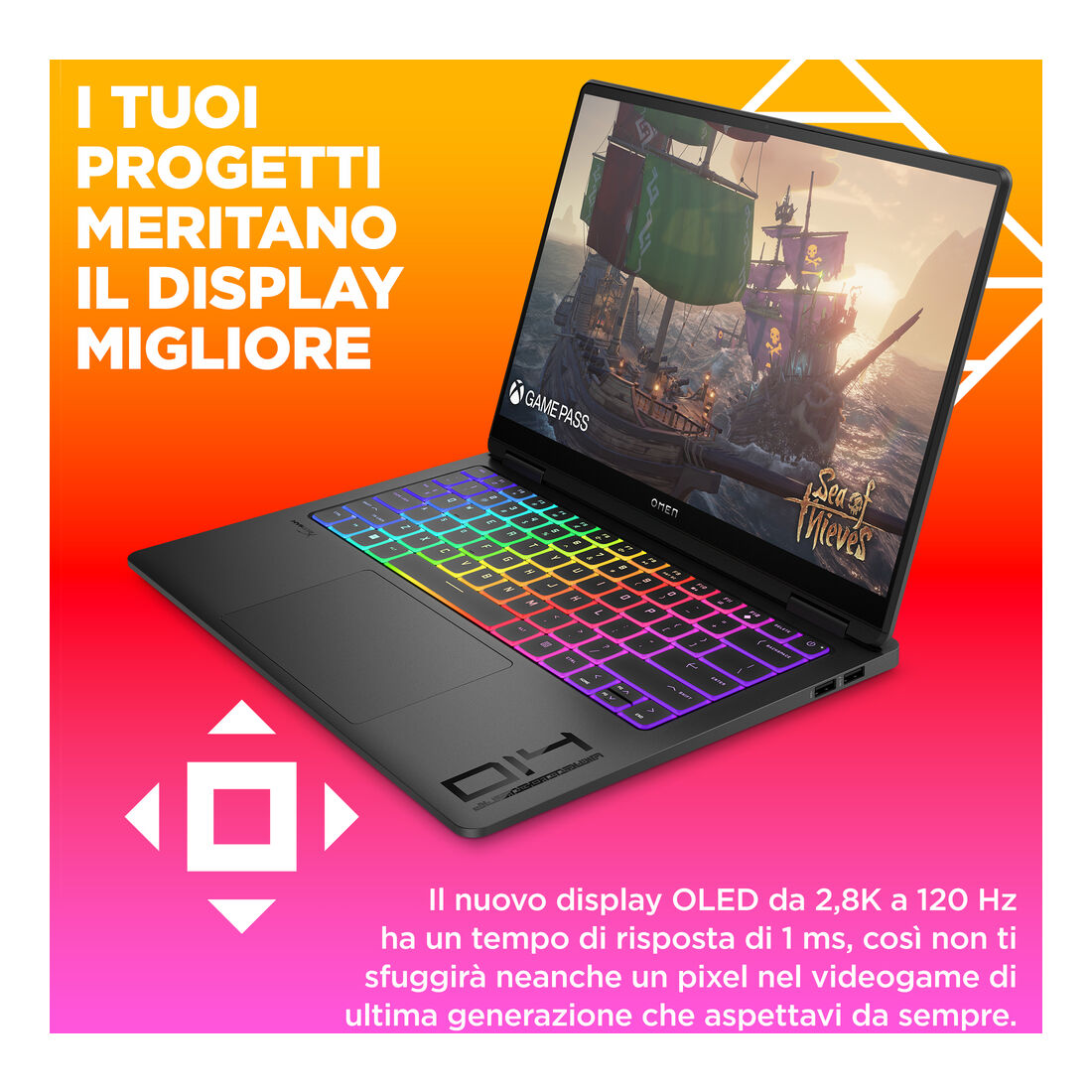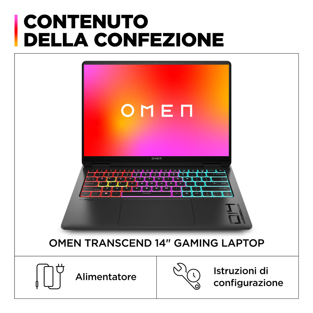 Laptop OMEN Transcend 14-fb0011nl, Windows 11 Home, 14″, Intel Core™ Ultra 7, 16GB RAM, 512GB SSD, NVIDIA GeForce RTX™ 4050, 3K, Nero ombra