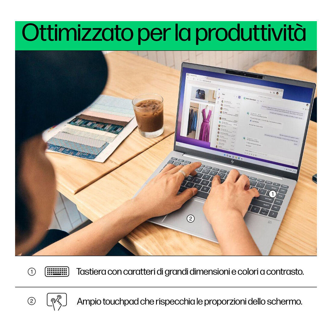 HP Pavilion Plus 14-ew0015nl. Tipo di prodotto: Computer portatile, Fattore di forma: Clamshell. Famiglia processore: Intel® Core™ i7, Modello del processore: i7-1355U. Dimensioni diagonale schermo: 35,6 cm (14″), Tipologia HD: 3K, Risoluzione del display: 2880 x 1800 Pixel. RAM installata: 16 GB, Tipo di RAM: LPDDR5x-SDRAM. Capacità totale di archiviazione: 1 TB, Supporto di memoria: SSD. Modello scheda grafica integrata: Intel Iris Xe Graphics. Sistema operativo incluso: Windows 11 Home. Colore del prodotto: Argento. Peso: 1,38 kg