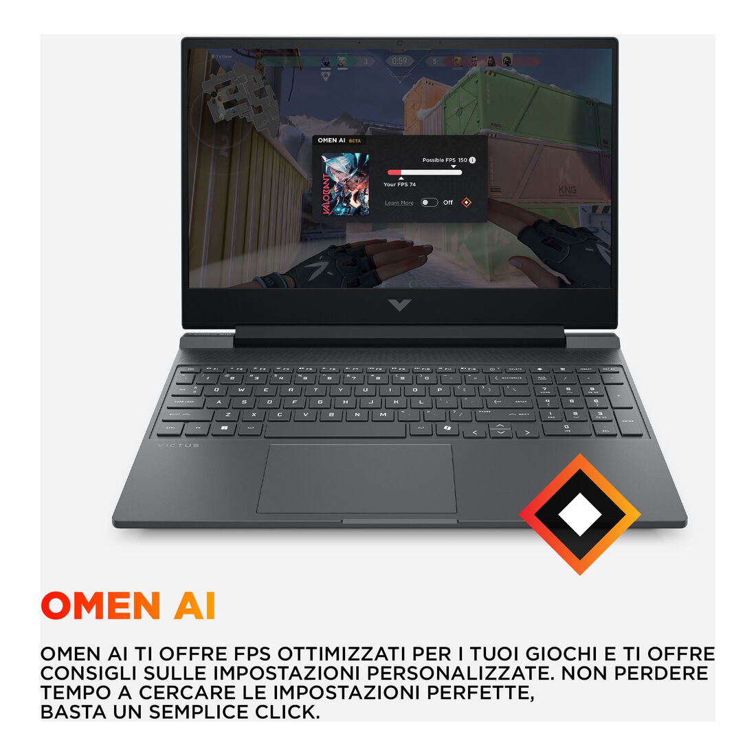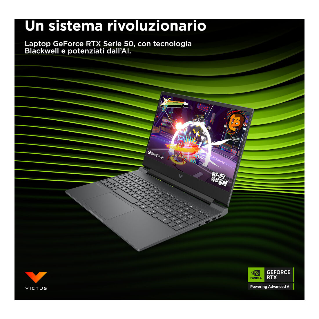 HP Victus Gaming 15-fa2016nl. Tipo di prodotto: Computer portatile, Fattore di forma: Clamshell. Famiglia processore: Intel® Core™ i5, Modello del processore: i5-13420H. Dimensioni diagonale schermo: 39,6 cm (15.6″), Tipologia HD: Full HD, Risoluzione del display: 1920 x 1080 Pixel. RAM installata: 16 GB, Tipo di RAM: DDR5-SDRAM. Capacità totale di archiviazione: 512 GB, Supporto di memoria: SSD. Modello scheda grafica integrata: Intel® UHD Graphics, Scheda grafica dedicata: NVIDIA GeForce RTX 5050. Sistema operativo incluso: Windows 11 Home. Colore del prodotto: Nero