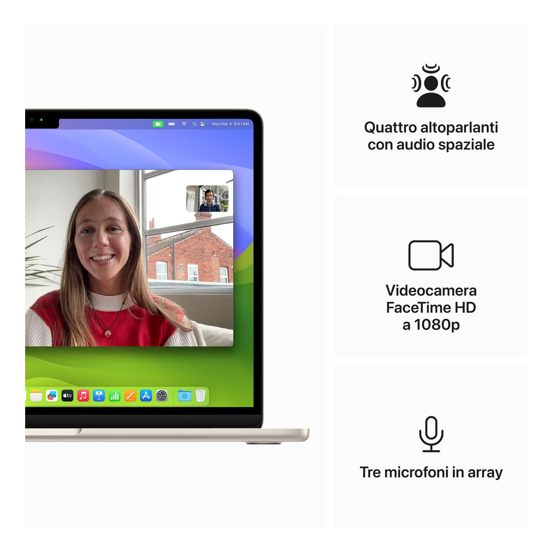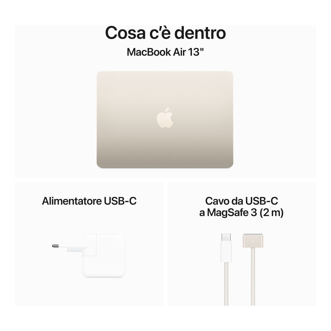 Apple MacBook Air 13” M3 chip con core 8 CPU e core 10 GPU, 8GB, 512GB SSD Galassia. Tipo di prodotto: Computer portatile, Fattore di forma: Clamshell. Famiglia processore: Apple M, Modello del processore: M3. Dimensioni diagonale schermo: 34,5 cm (13.6″), Risoluzione del display: 2560 x 1664 Pixel. RAM installata: 8 GB. Capacità totale di archiviazione: 512 GB, Supporto di memoria: SSD. Modello scheda grafica integrata: Apple GPU. Sistema operativo incluso: macOS Sonoma. Colore del prodotto: Beige. Peso: 1,24 kg