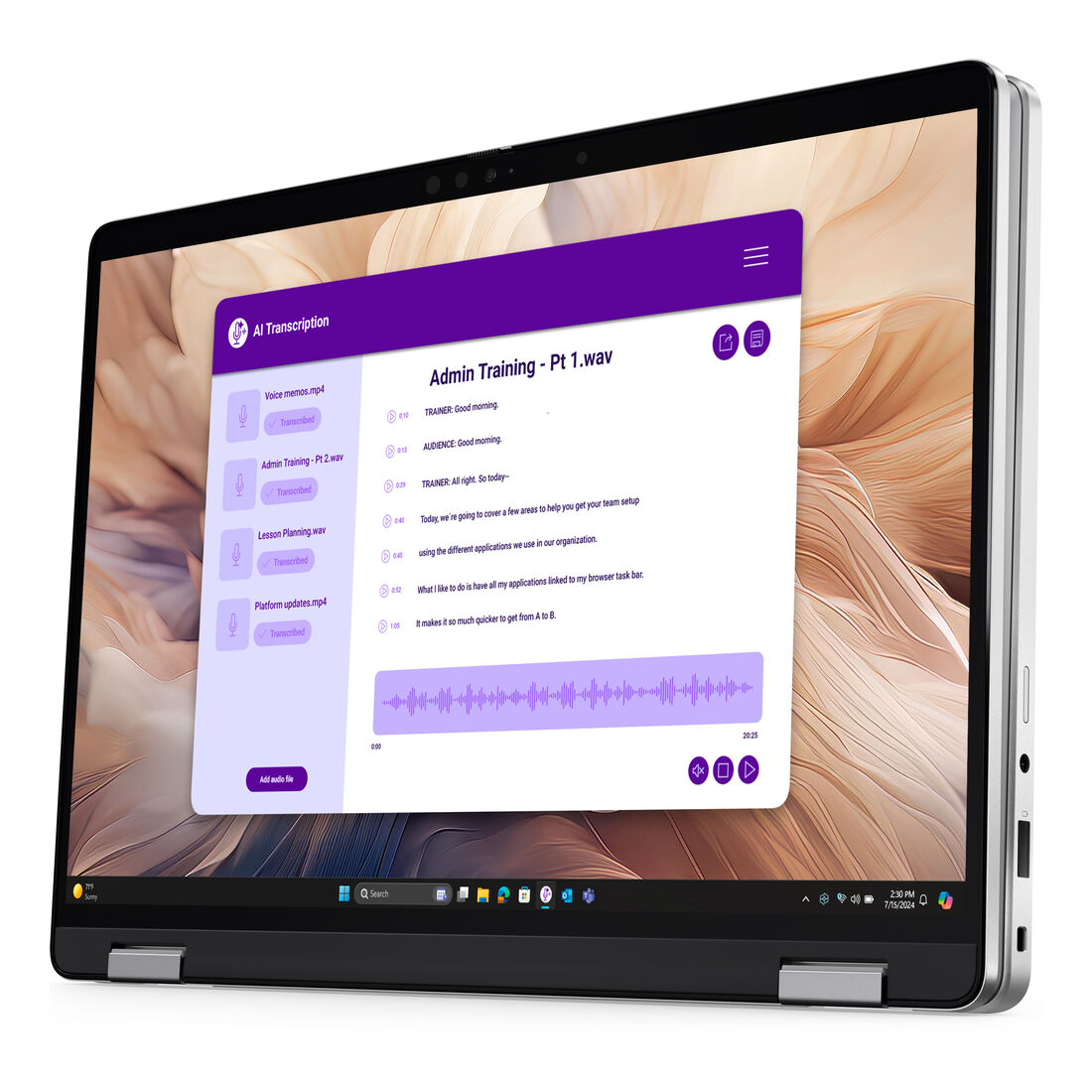 DELL Pro 14 Plus PB14250 2-in-1. Tipo di prodotto: Ibrido (2 in 1), Fattore di forma: Convertibile (a cartella). Famiglia processore: Intel Core Ultra 7, Modello del processore: 265U. Dimensioni diagonale schermo: 35,6 cm (14″), Tipologia HD: Full HD+, Risoluzione del display: 1920 x 1200 Pixel, Touch screen. RAM installata: 32 GB, Tipo di RAM: DDR5-SDRAM. Capacità totale di archiviazione: 1 TB, Supporto di memoria: SSD. Modello scheda grafica integrata: Intel Graphics. Sistema operativo incluso: Windows 11 Pro. Colore del prodotto: Alluminio