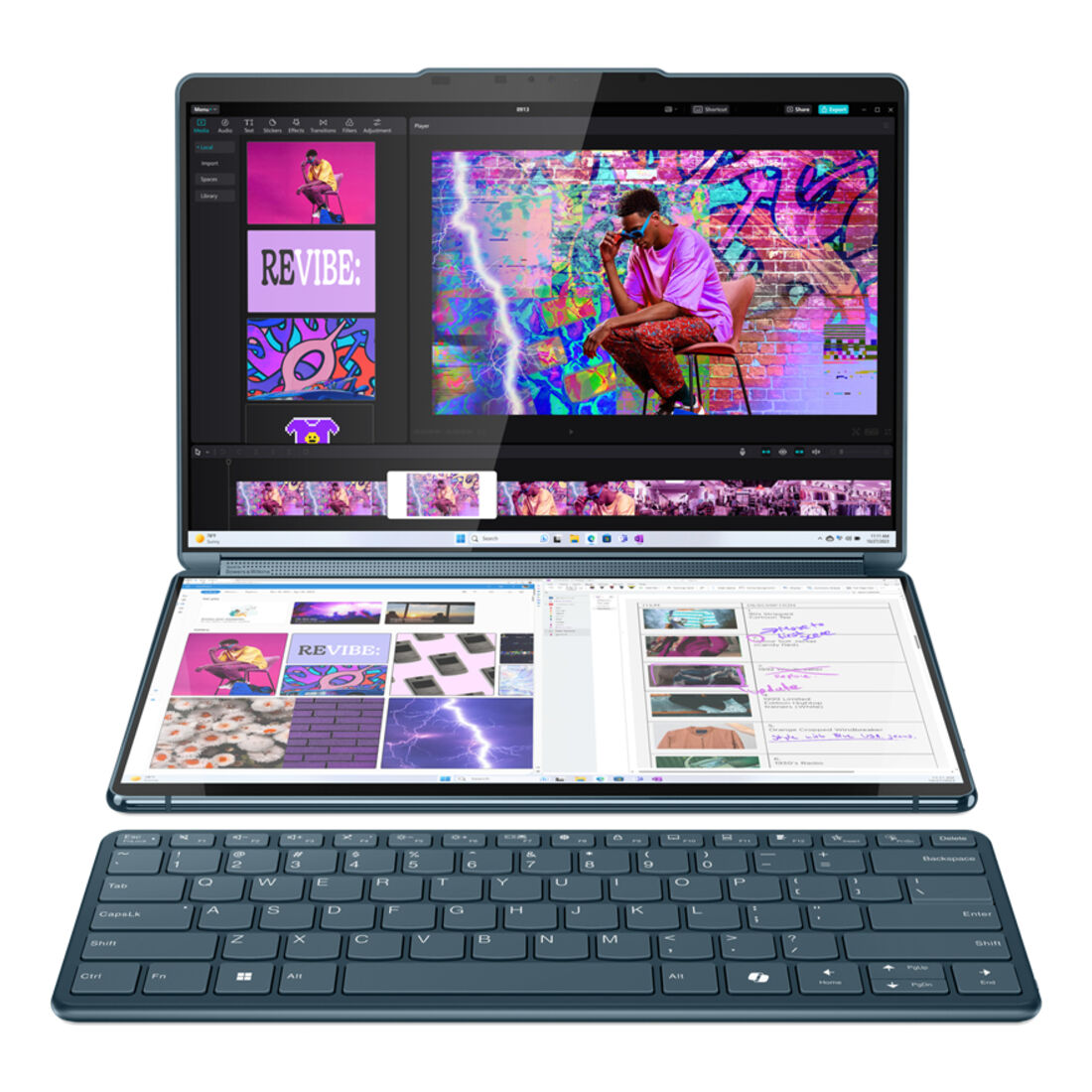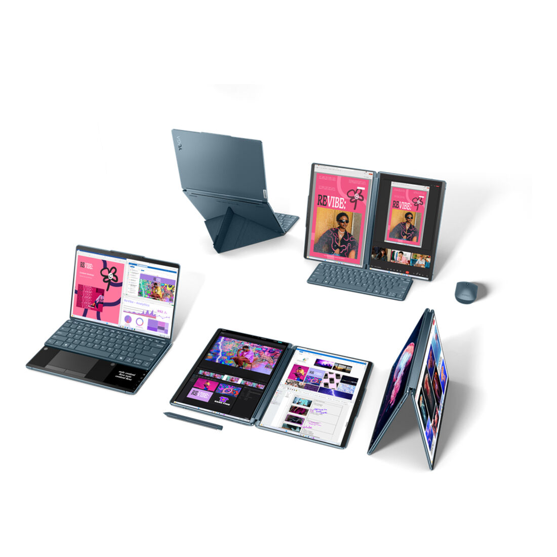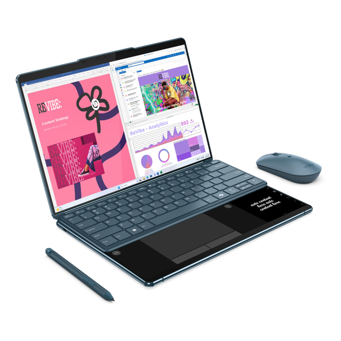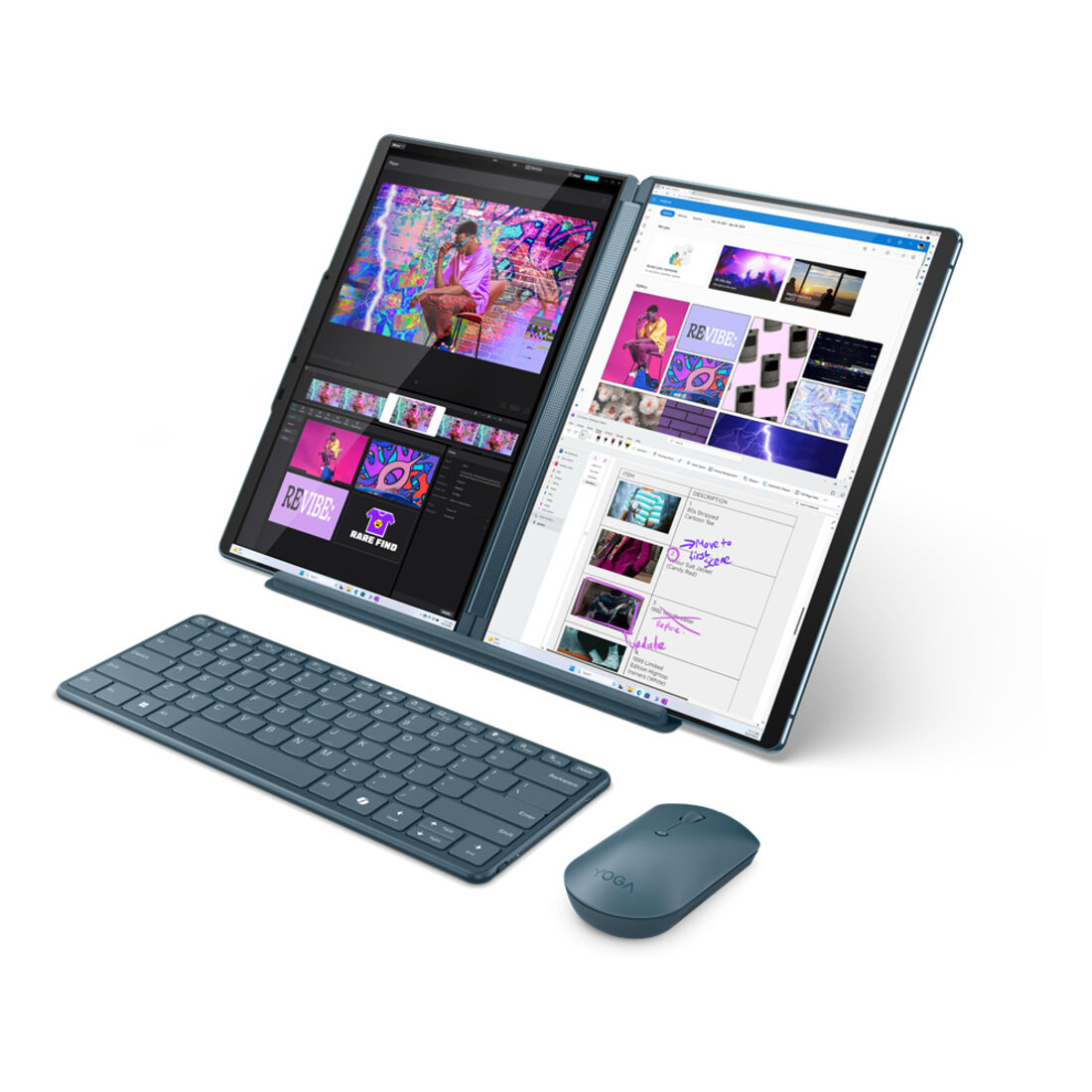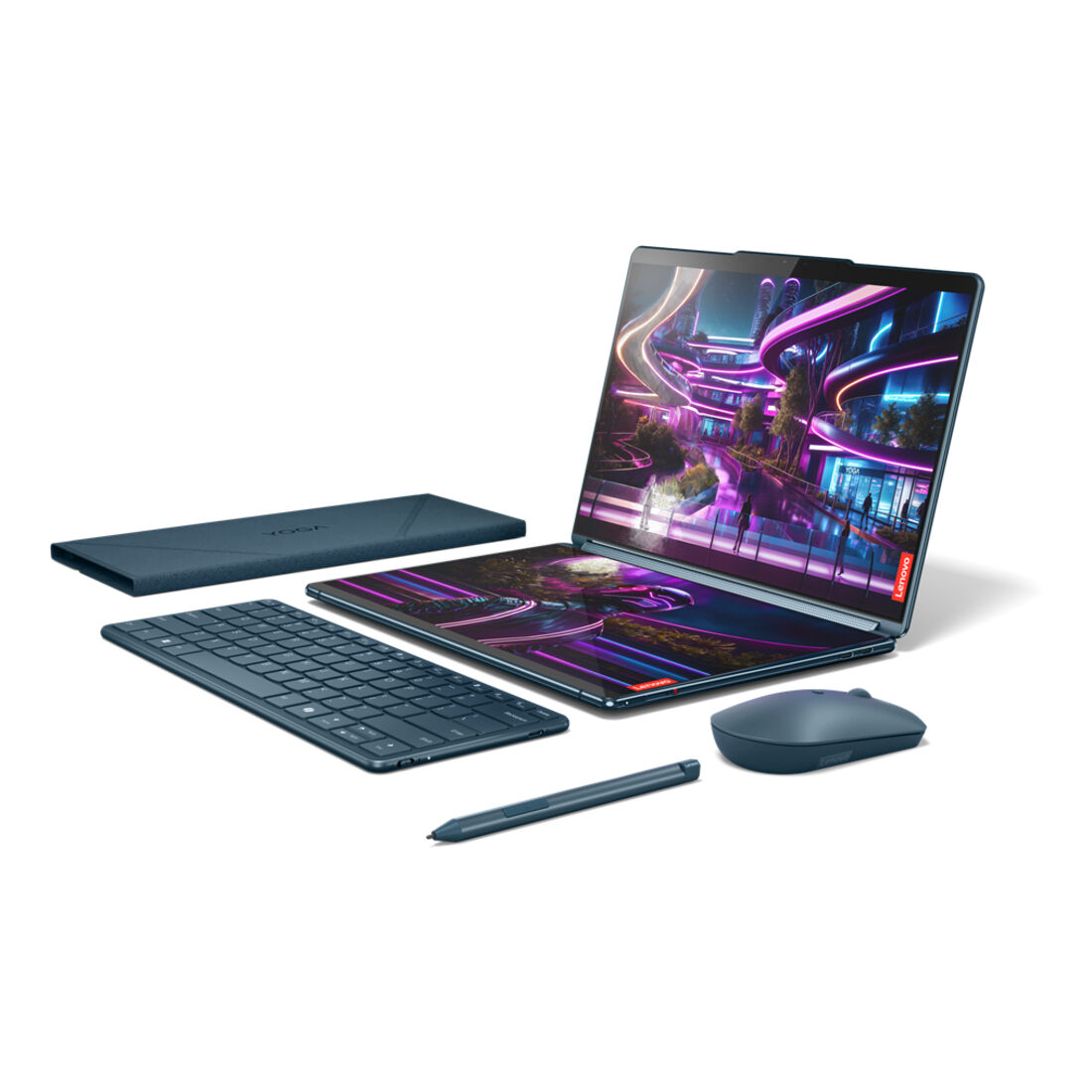Lenovo Yoga Book 9 13IMU9. Tipo di prodotto: Ibrido (2 in 1), Fattore di forma: Convertibile (schermo pieghevole-doppio). Famiglia processore: Intel Core Ultra 7, Modello del processore: 155U. Dimensioni diagonale schermo: 33,8 cm (13.3″), Tipologia HD: 2.8K, Risoluzione del display: 2880 x 1800 Pixel, Touch screen. RAM installata: 32 GB, Tipo di RAM: LPDDR5x-SDRAM. Capacità totale di archiviazione: 1 TB, Supporto di memoria: SSD. Modello scheda grafica integrata: Intel Graphics. Sistema operativo incluso: Windows 11 Home. Colore del prodotto: Colore foglia di tè