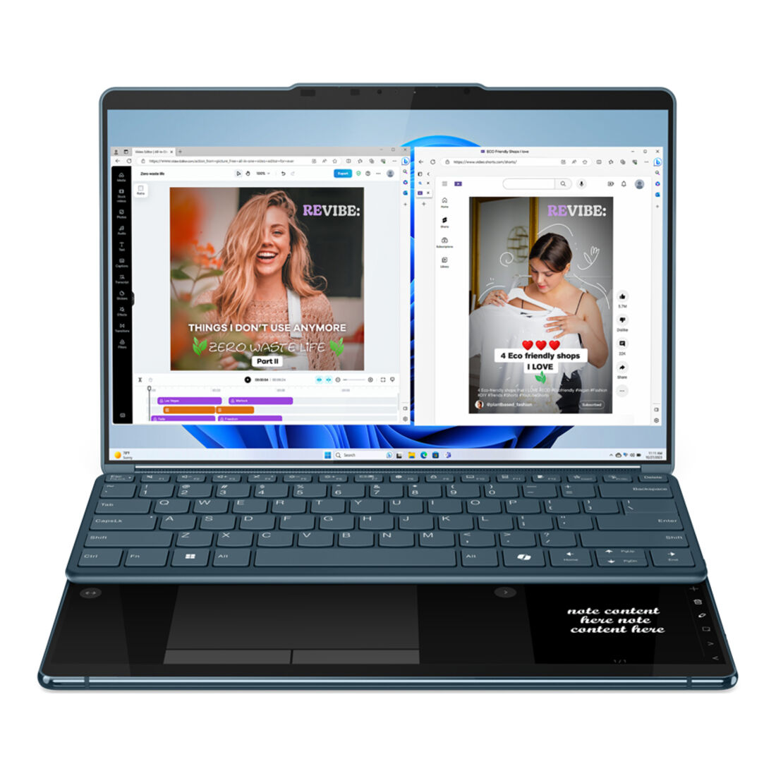Intel Core Ultra 7 155U, 12C (2P + 8E + 2LPE)/14T, Max Turbo up to 4.8Ghz, 12MB, 32GB LPDDR5x-7467, 1TB SSD M.2 2242 PCIe 4.0×4 NVMe, 2x 13.3″ 2.8K (2880×1800) OLED 400nits Glossy / Anti-fingerprint 100% DCI-P3 60Hz Eyesafe Dolby Vision DisplayHDR True Black 500 Glass Touch, Intel Graphics, Wi-Fi 6E 11ax 2×2 + BT5.3, 5.0MP + IR with E-shutter, Windows 11 Home